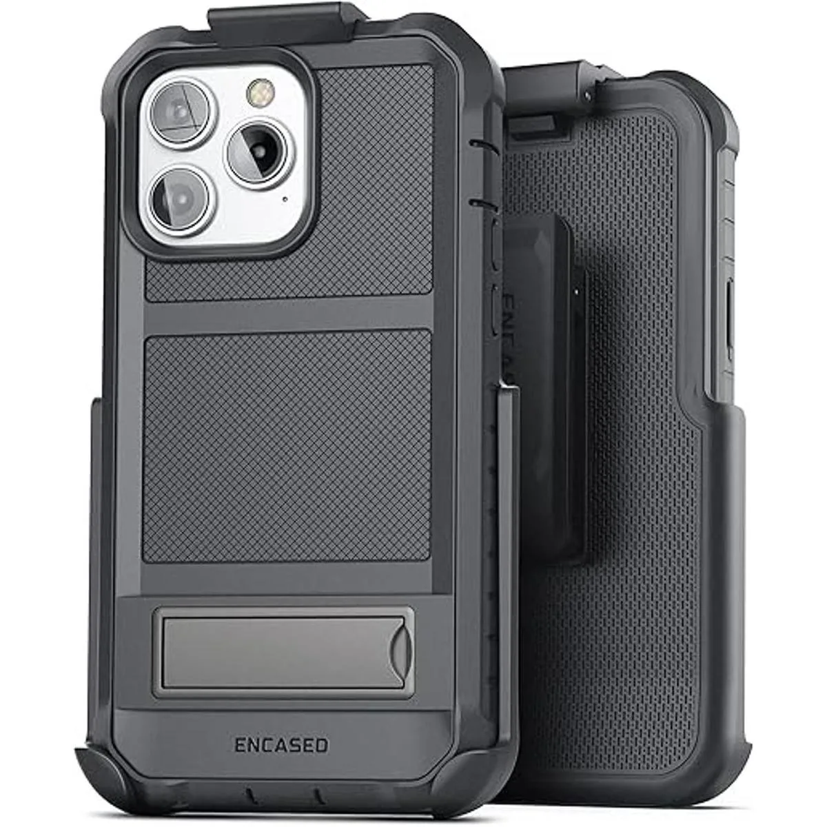 Encased Falcon Funda diseñada para iPhone 14 Pro con soporte de clip para cinturón con protector de pantalla integrado, funda protectora de cuerpo completo con funda, color negro