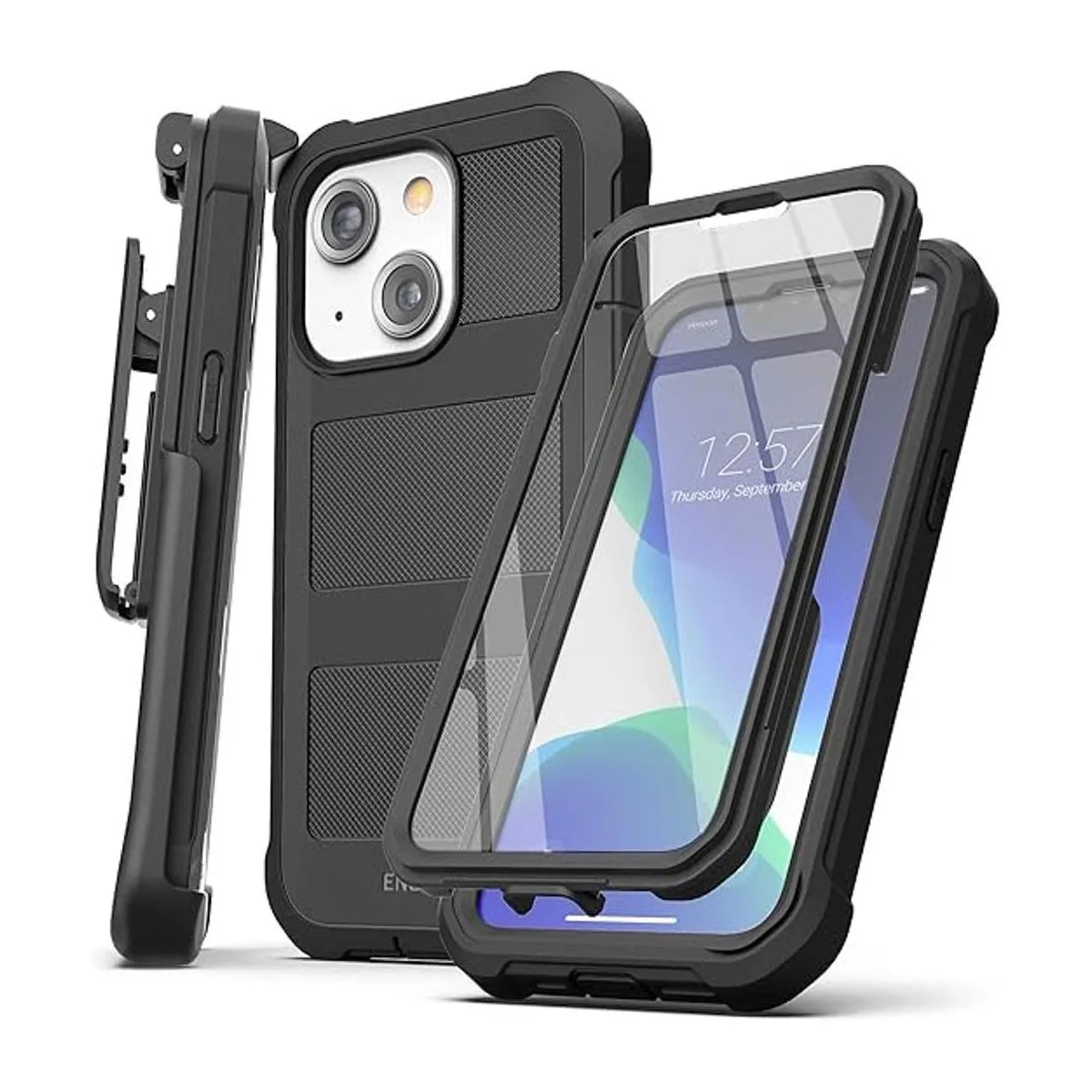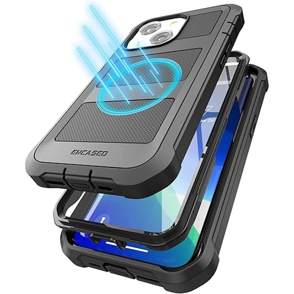 Encased FalconShield Funda compatible con iPhone 13 Magsafe con protector de pantalla integrado y clip para cinturón negro