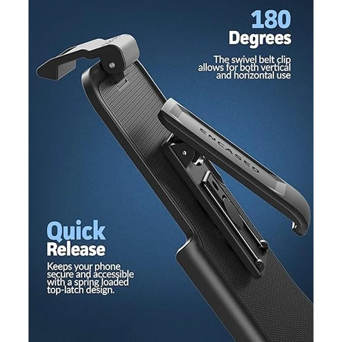 Encased Funda delgada diseñada para iPhone 14 con clip para cinturón, funda delgada para teléfono con funda negro mate