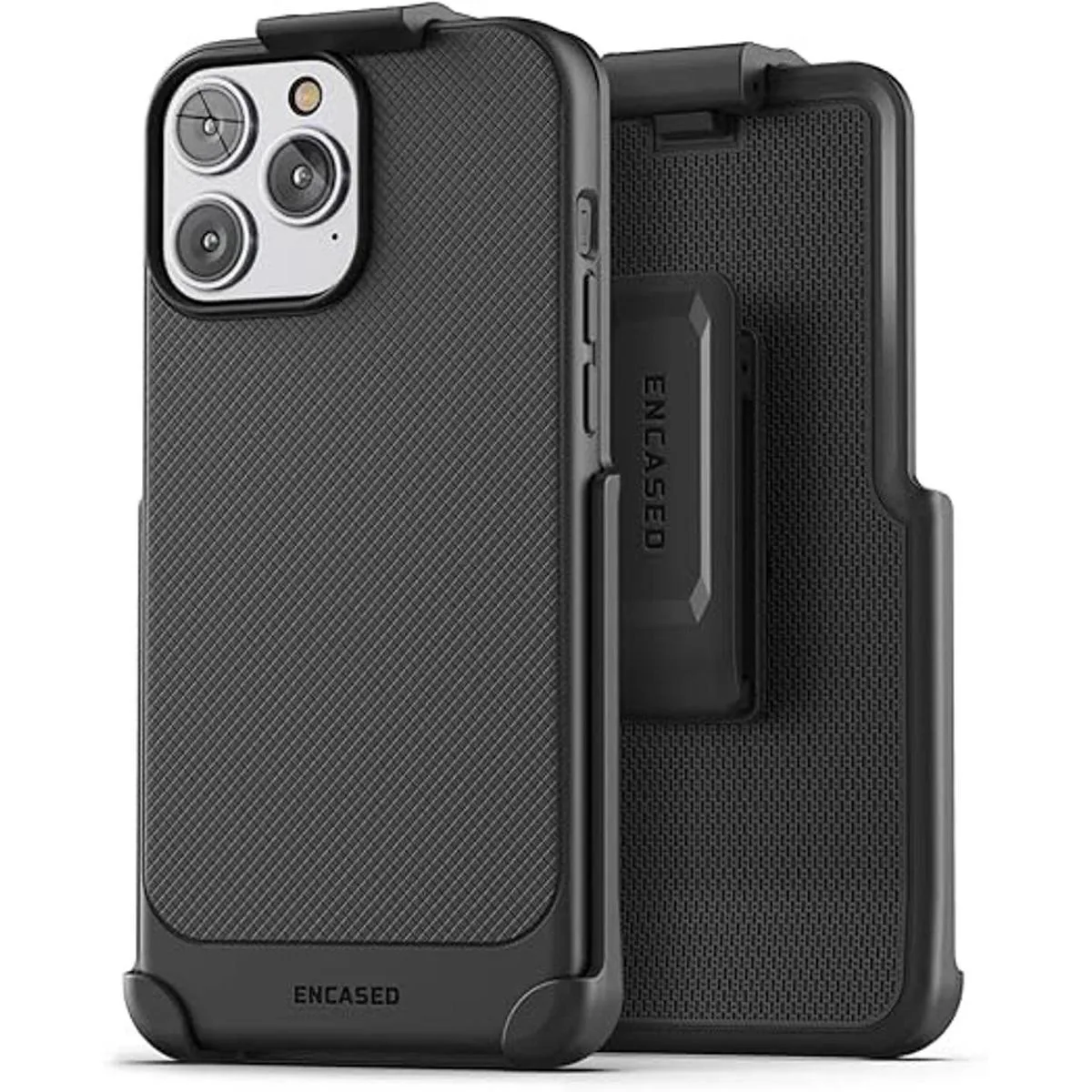 Encased Funda delgada diseñada para iPhone 14 PRO con clip para cinturón, funda delgada para teléfono con funda negro mate