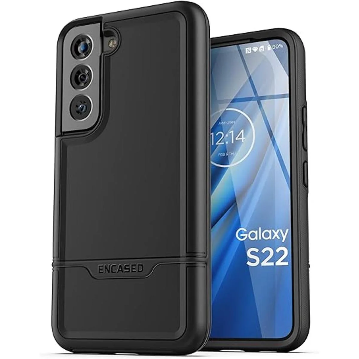 Encased Rebel Funda protectora para Samsung Galaxy S22 con clip para cinturón, a prueba de golpes con funda negro