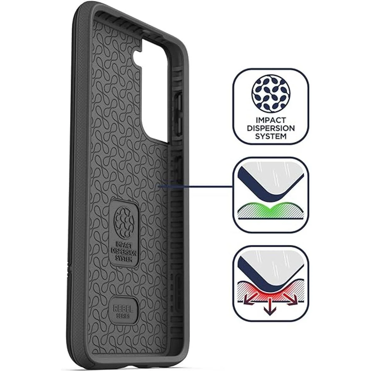 Nuevo y mejorado para el Galaxy S21 2021 El Rebel ahora cuenta con una estructura totalmente unida de 2 piezas que proporciona una protección robusta de doble capa