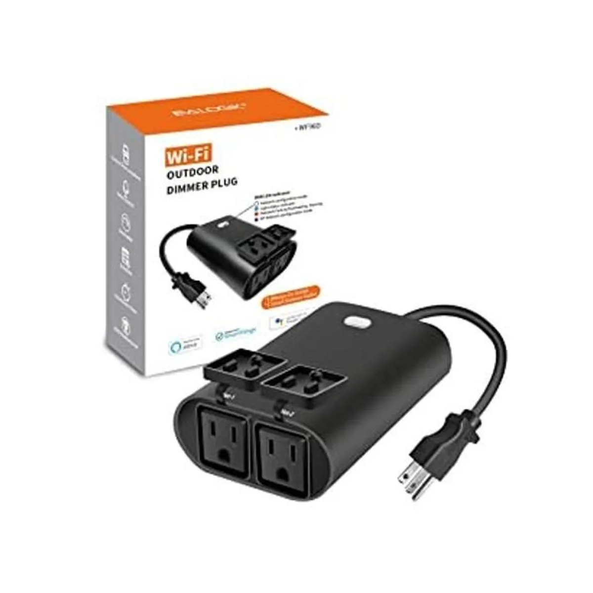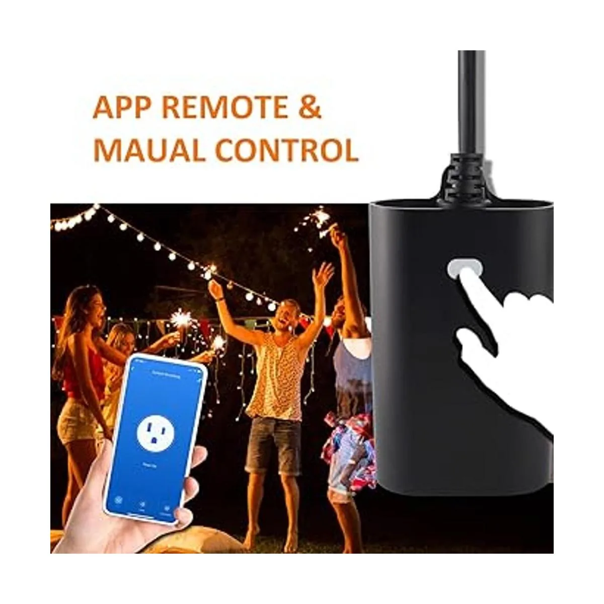 Enchufe inteligente para exteriores, toma de luz WiFi de 2.4 G compatible con Alexa y Google Home, una toma de regulador una toma de corriente siempre encendida, IP65 impermeable para luces regulables WF96D