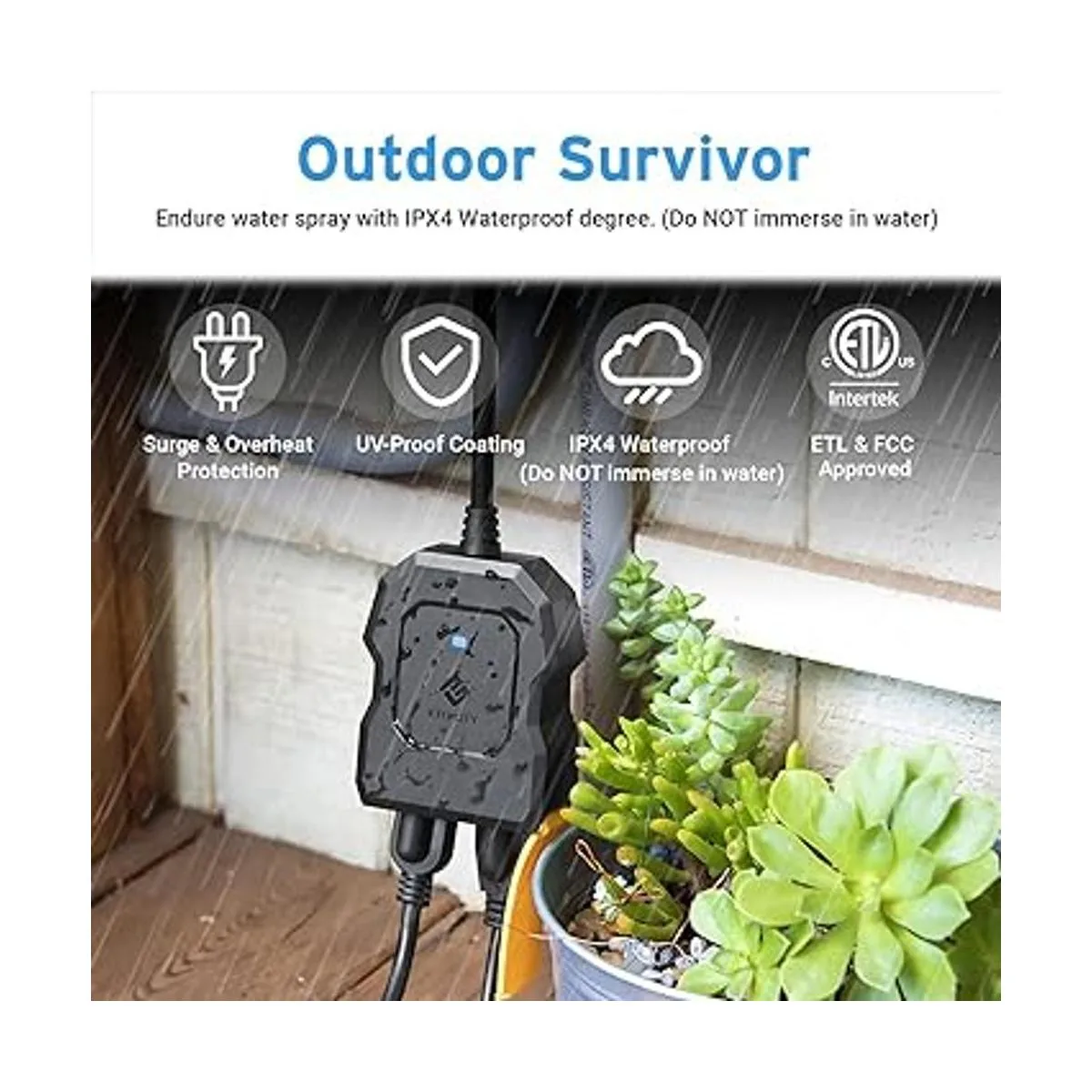 Enchufe inteligente para exteriores, toma WiFi Etekcity para exteriores con 2 enchufes, funciona con Alexa y Google Home, control remoto inalámbrico, monitoreo de energía y función de temporizador, IPX4 impermeable, certificación FCC y ETL