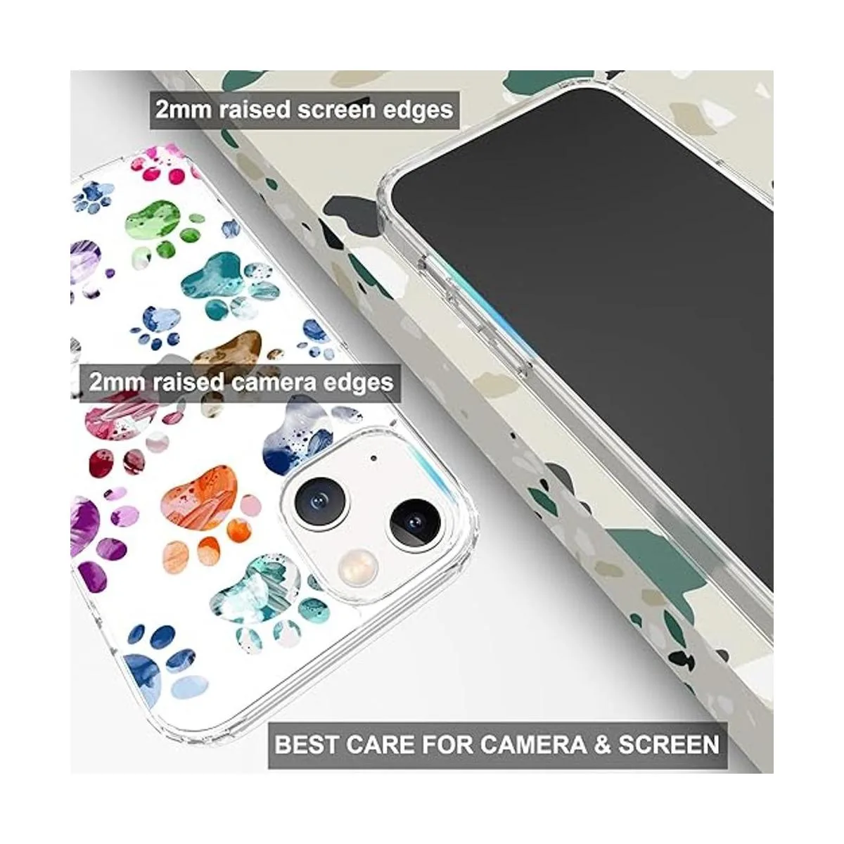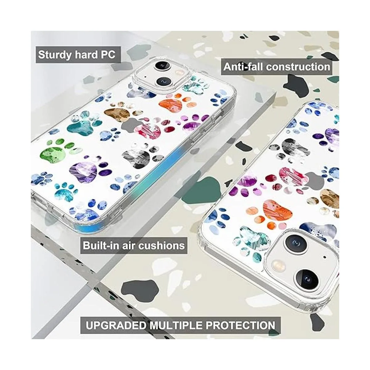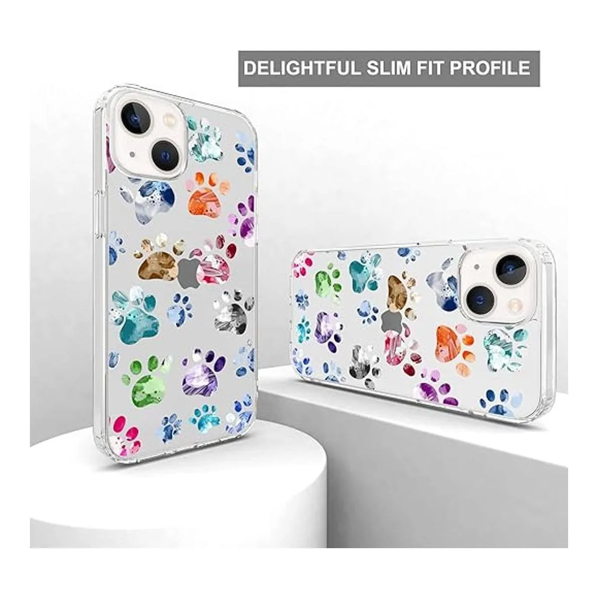 ENDIY Dogs Paws Funda transparente con diseño, compatible con iPhone 14, diseño de patas de perros, patrón de huellas de patas, protección contra caídas de grado militar, resistente a los arañazos para iPhone 14
