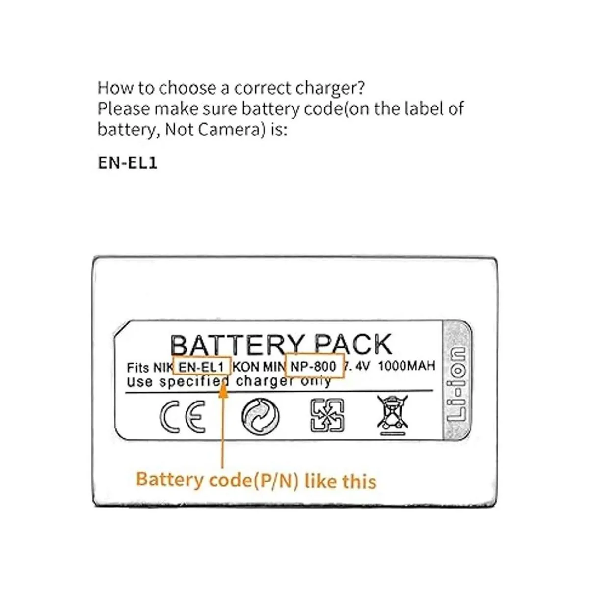 Alta compatibilidad: ajuste para batería de cámara Nikon ENEL1, por favor, asegúrese de que el modelo de batería en la etiqueta de su batería en la lista de arriba.