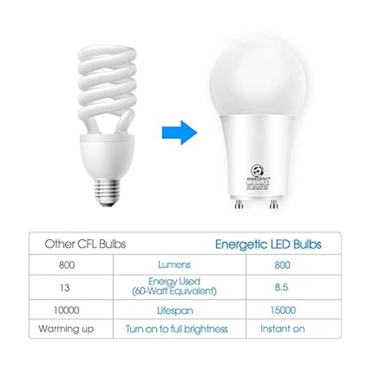 Energetic Base LED GU24, forma A19, equivalente a 60 W 8.5 W, luz diurna de 5000 K, 800 lúmenes, no regulable, bombilla LED de 2 pines, certificación UL, paquete de 4