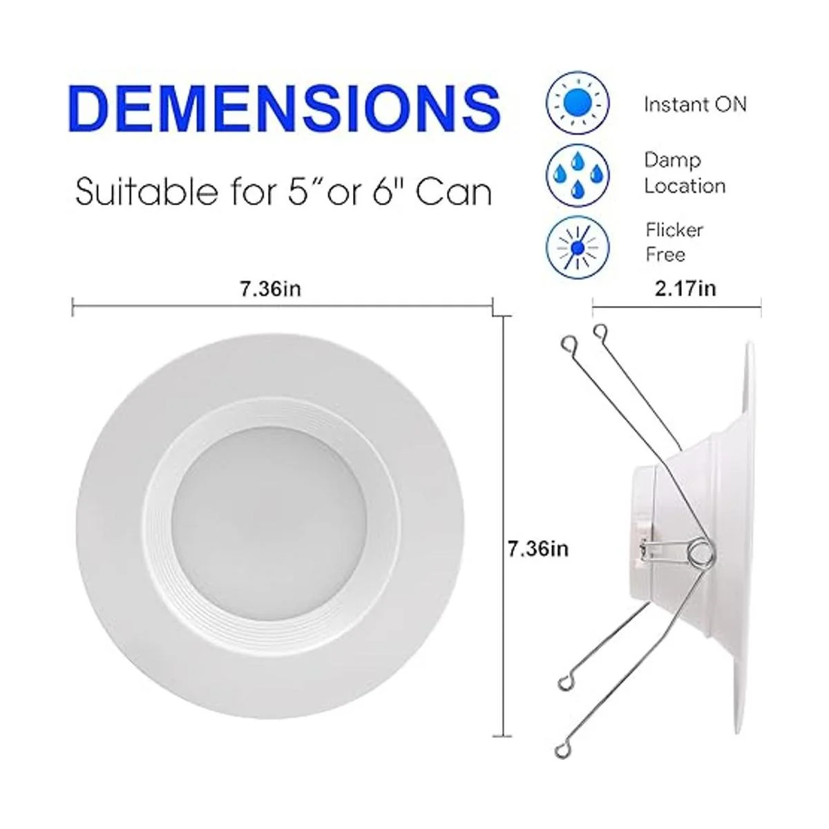 Certificación Energy Star y ETL: las luces LED empotrables están certificadas por Energy Star/ETL/FCC, no parpadean, plomo o mercurio. La luz LED empotrada de 6 pulgadas tiene una buena disipación de calor que no se sobrecalienta ni causa un fuego