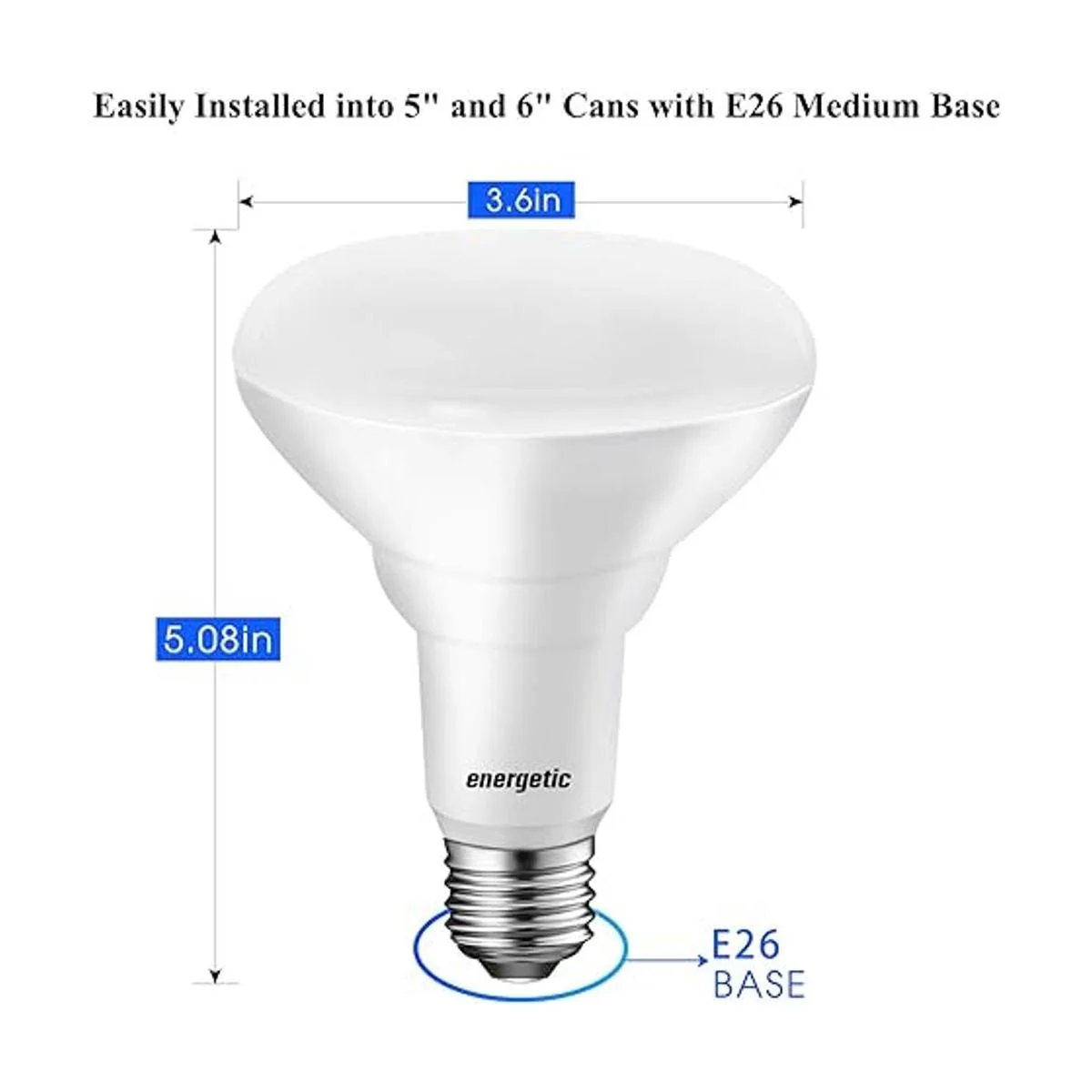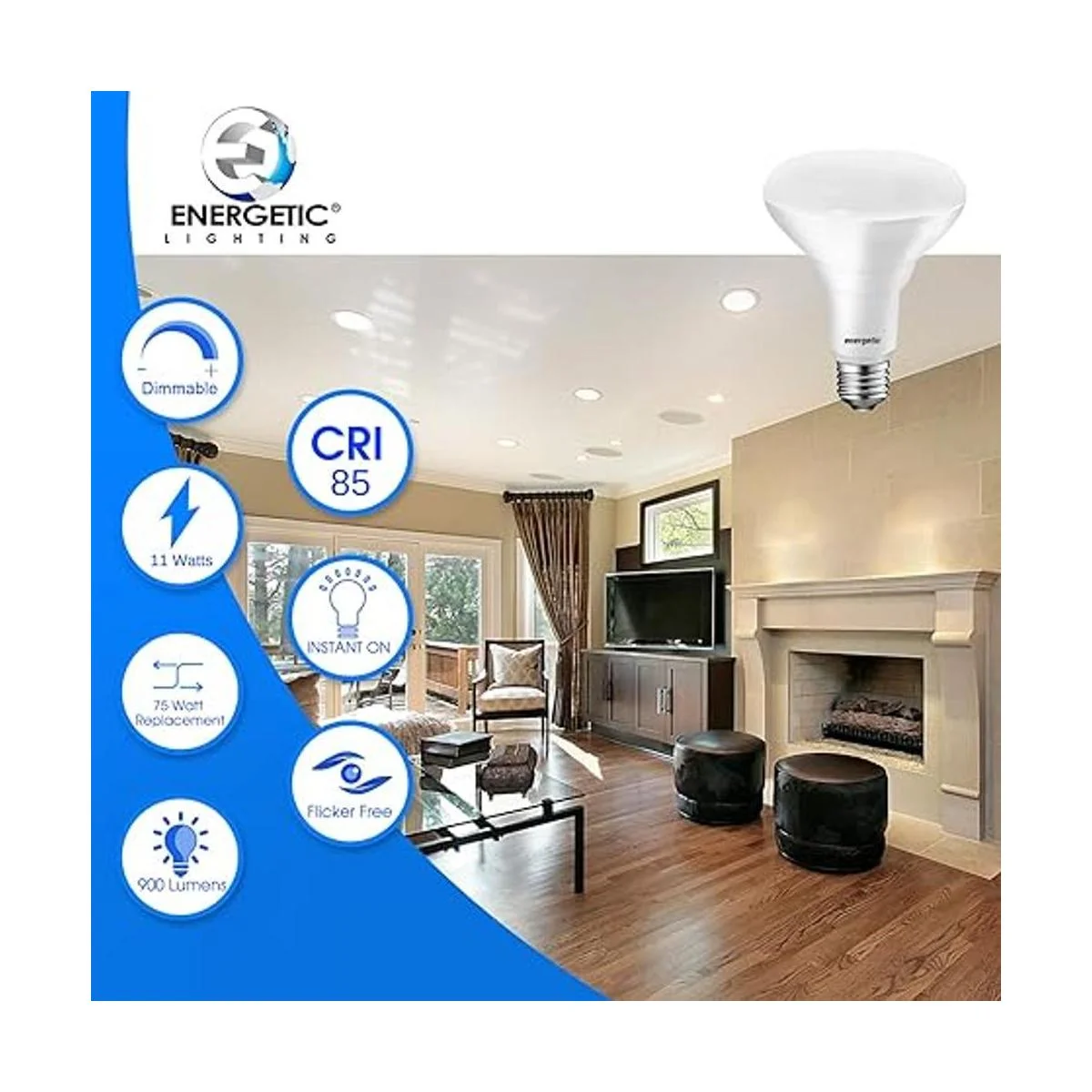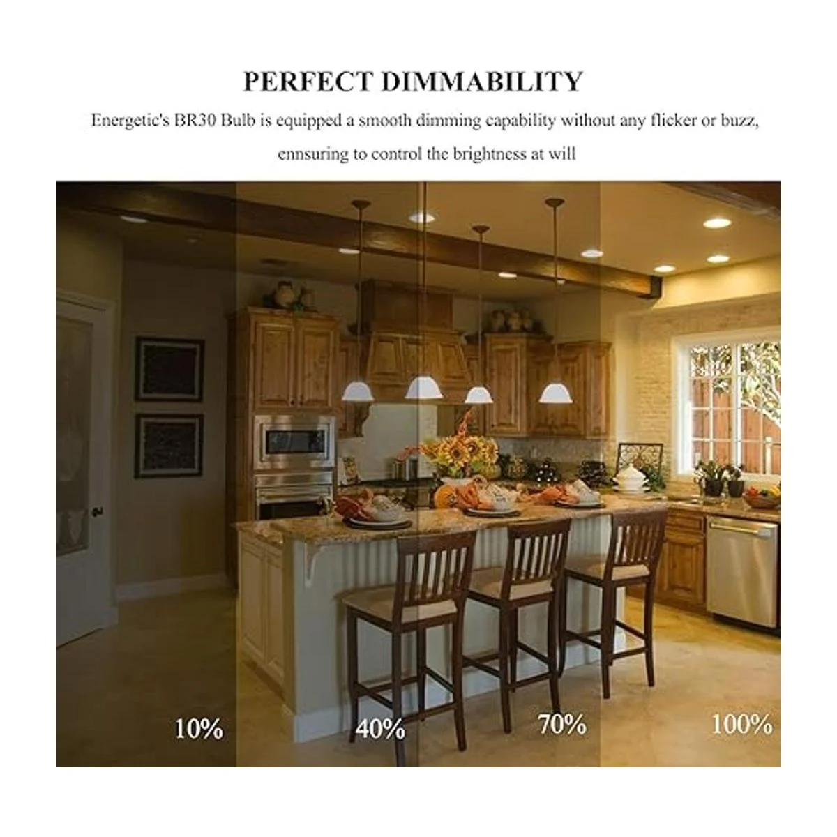 Energetic Paquete de 12 bombillas empotrables BR30 para interiores, regulable, 11 W 75 W, luz de inundación blanca cálida de 3000 K, 900 lúmenes, CRI85, bombilla LED para techo, certificación UL