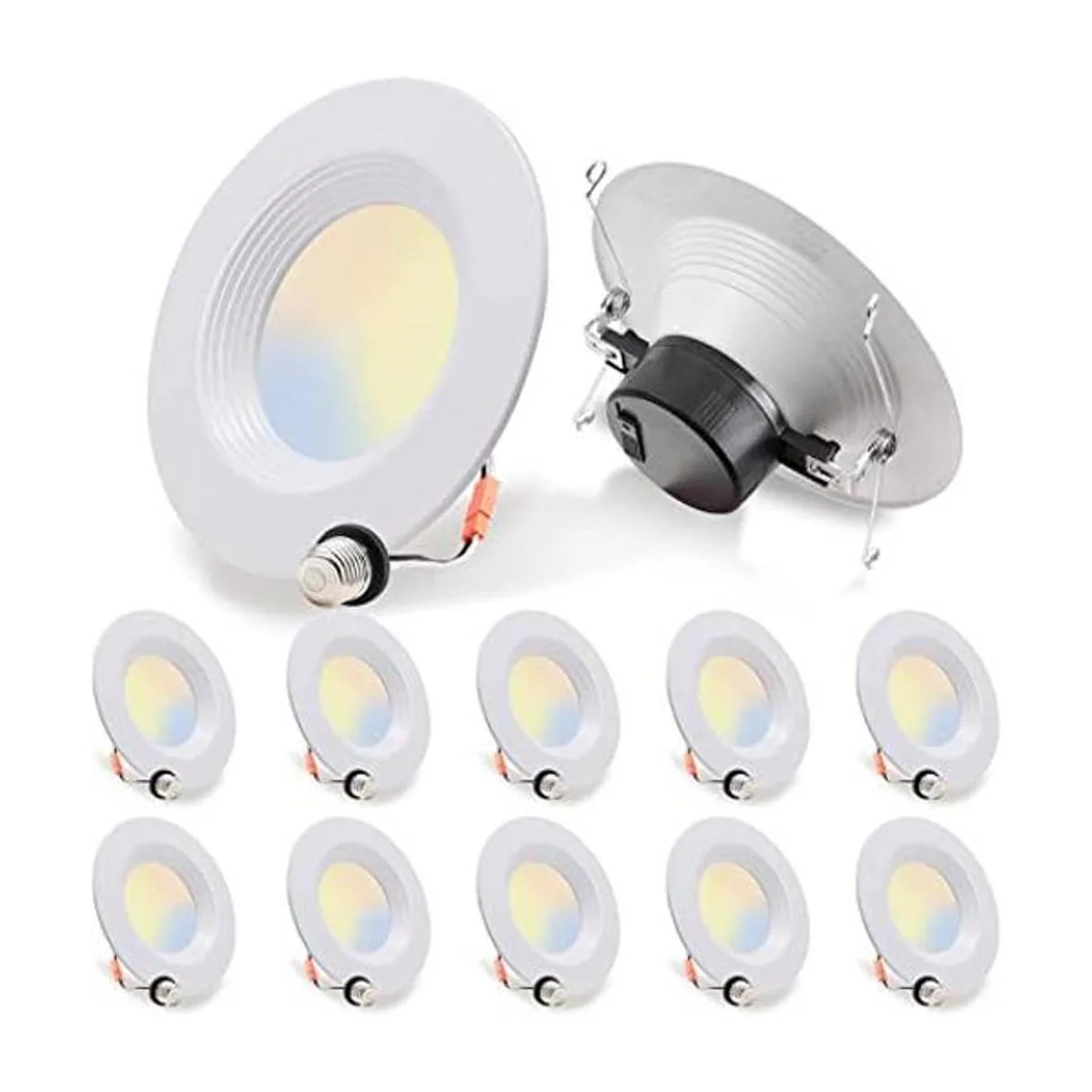 Energetic Paquete de 12 luces empotradas LED de 56 pulgadas, 5 CCT, borde deflector, clasificación húmeda, tornillo de base E26, 10.5 W 85 W, regulable, instalación simple de reajuste, Energy Star y certificación ETL