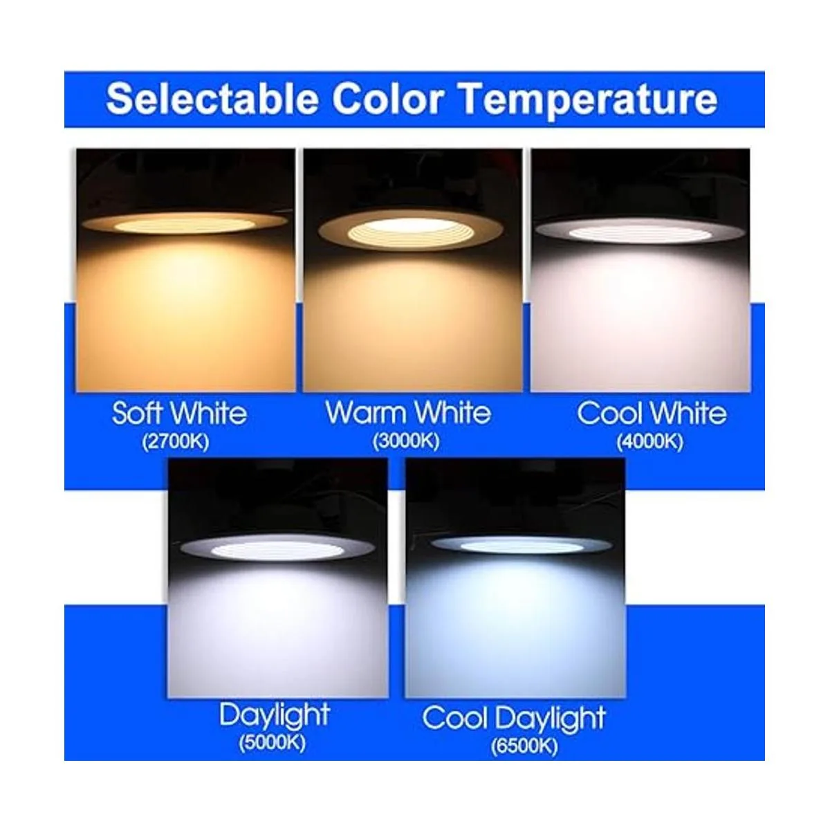 Regulabilidad suave y cambio de color CCT Las capacidades de atenuación sin costuras y suaves del 100 al 10 se adaptan a cualquier estado de ánimo o decoración. Compatible con la mayoría de reguladores del mercado. Elige entre 5 colores 2700 K/3000 k/4000 K/5000 K/6500 K para cambiar al instante el aspecto y el ambiente de tu hogar y te permite disfrutar de tu vida.