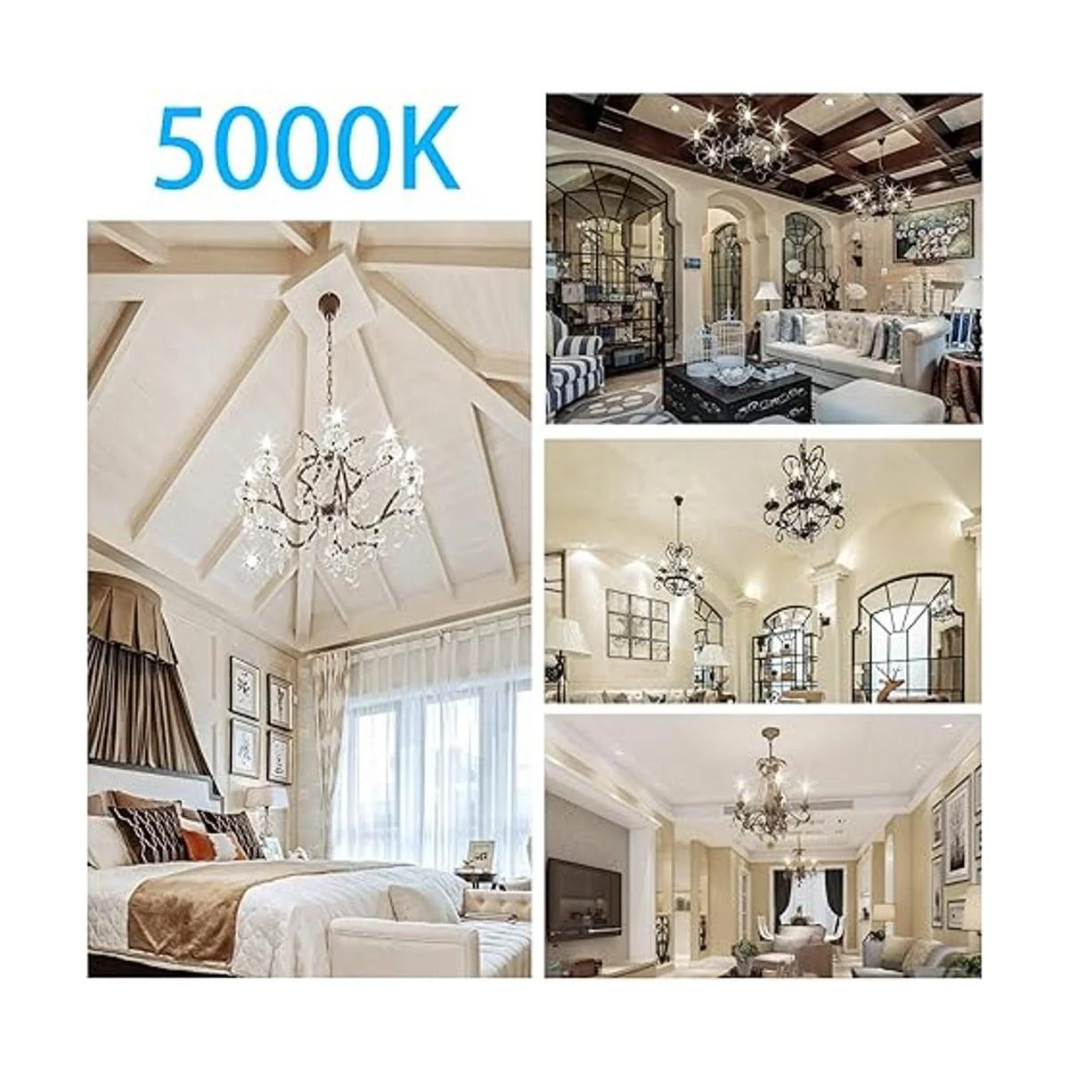 Eficiencia energética: utiliza solo bombillas LED de candelabro de 5 W que emiten 550 lúmenes de cada luz para reemplazar bombillas incandescentes de candelabro de 60 W, ahorra un 90 en facturas de electricidad