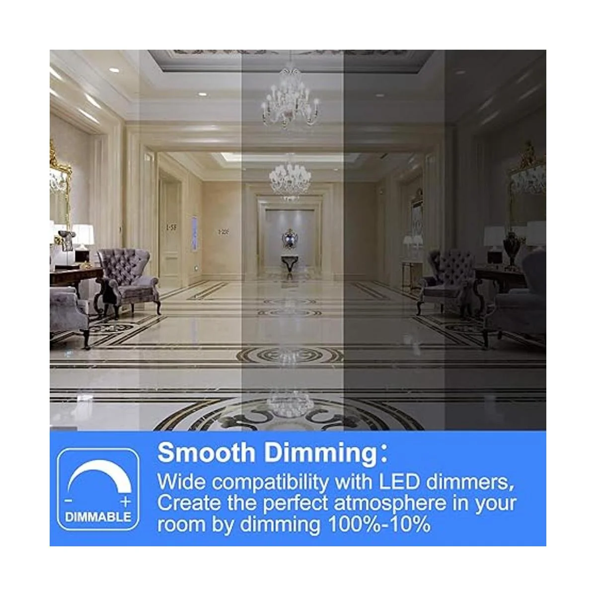 Regulable La bombilla LED de candelabro B11 es compatible con la mayoría de los reguladores. Atenuación suave del 10 al 100 sin radiación ni parpadeo, poder ajustar el brillo de la luz significa que puedes crear el ambiente perfecto en tu habitación en cualquier momento