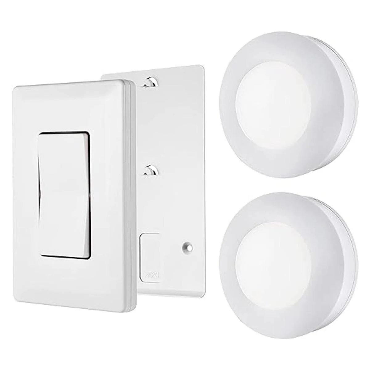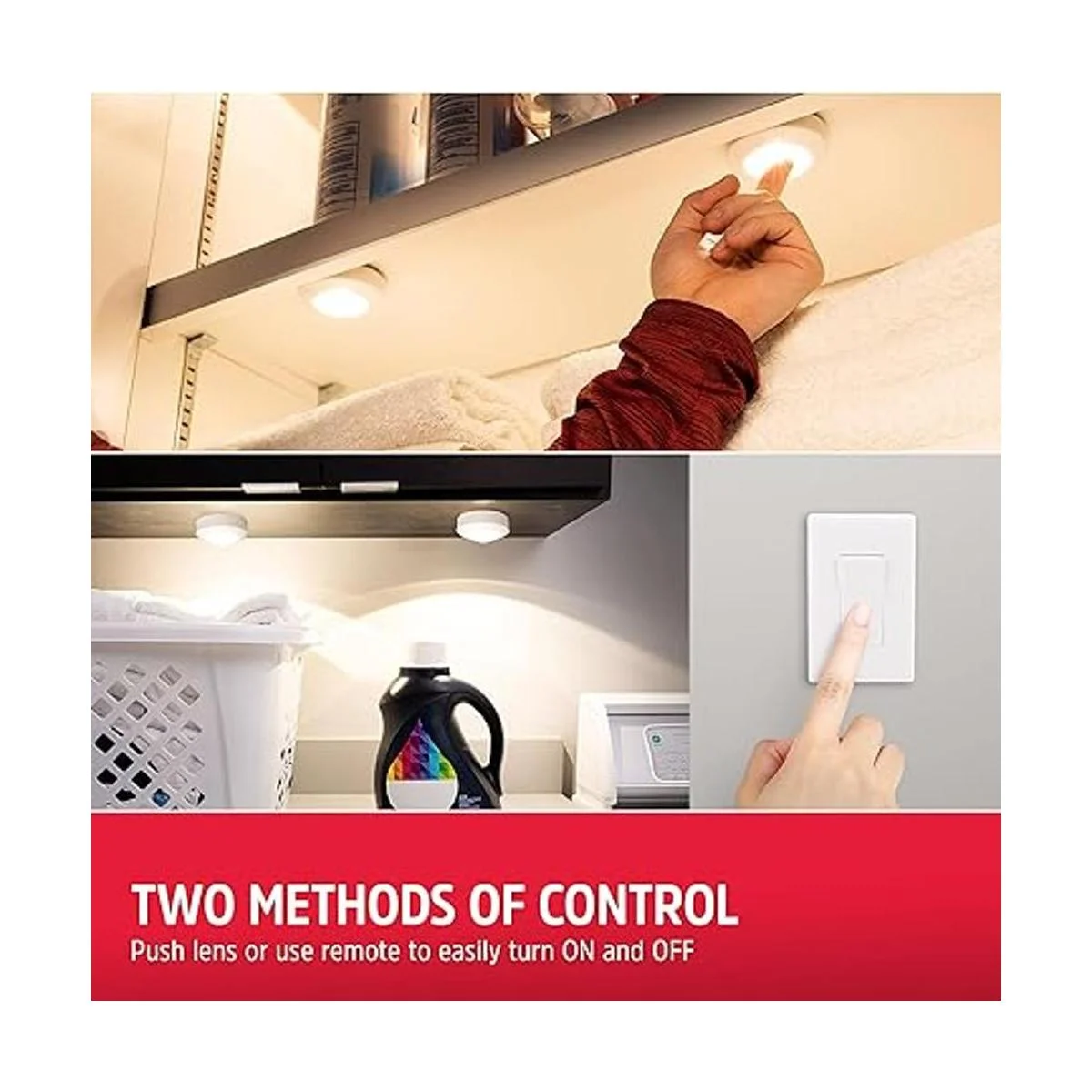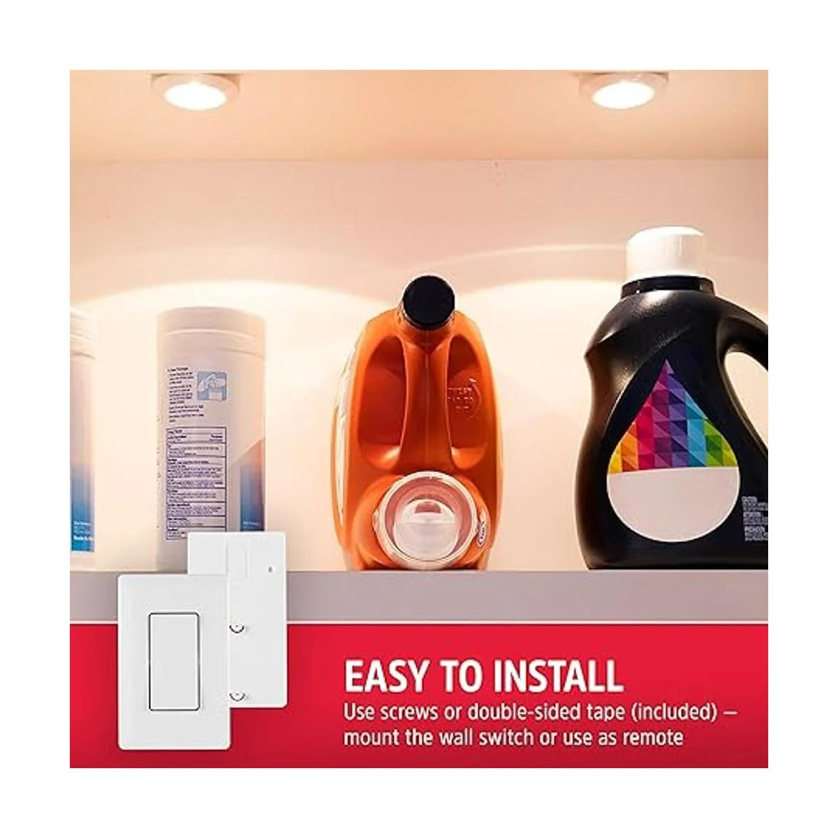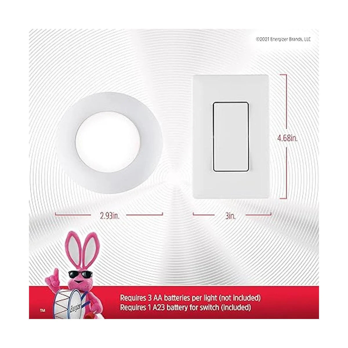 Energizer 58822T1 Luces de disco con control remoto de interruptor de pared, 2 unidades, color blanco, funciona con pilas, inalámbrica, encendidoapagado y rango de 50 pies, perfecto para lavandería, armarios, garaje y más,