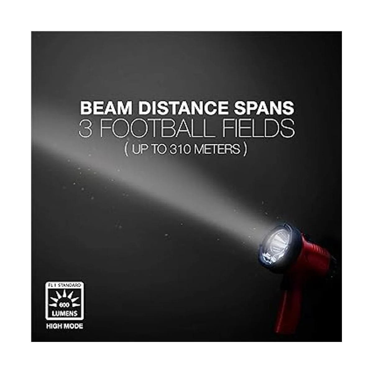 2 modos: con una salida de 600 lúmenes en modo alto hasta 4 horas o 300 lúmenes en bajo hasta 9 horas, este foco LED ofrece una luz brillante versátil