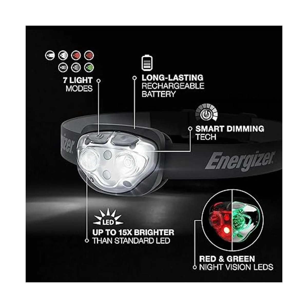 Energizer LED Headlamp Rechargeable PRO Series, IPX4 Water Resistant, Ultra Bright Head Light, Multiple Light Modes, Rugged Headlight for Camping, Outdoors, Emergency Light, USB Included