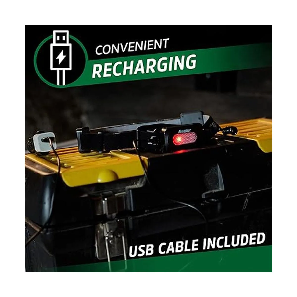 ENERGIZER Linterna frontal recargable S400, luz LED de haz ancho, IPX4, resistente al agua, faros ultra brillantes para campamento, exteriores, cortes de energía de emergencia cable USB incluido
