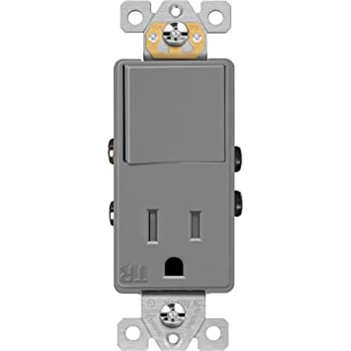 ENERLITES Combinación de interruptor y tomacorriente, interruptor de paleta decoradora combinada de 15A120VCA con toma de corriente resistente a manipulaciones 15A125VAC, grado residencialcomercial, certificación UL, 68625TRGY, gris gris