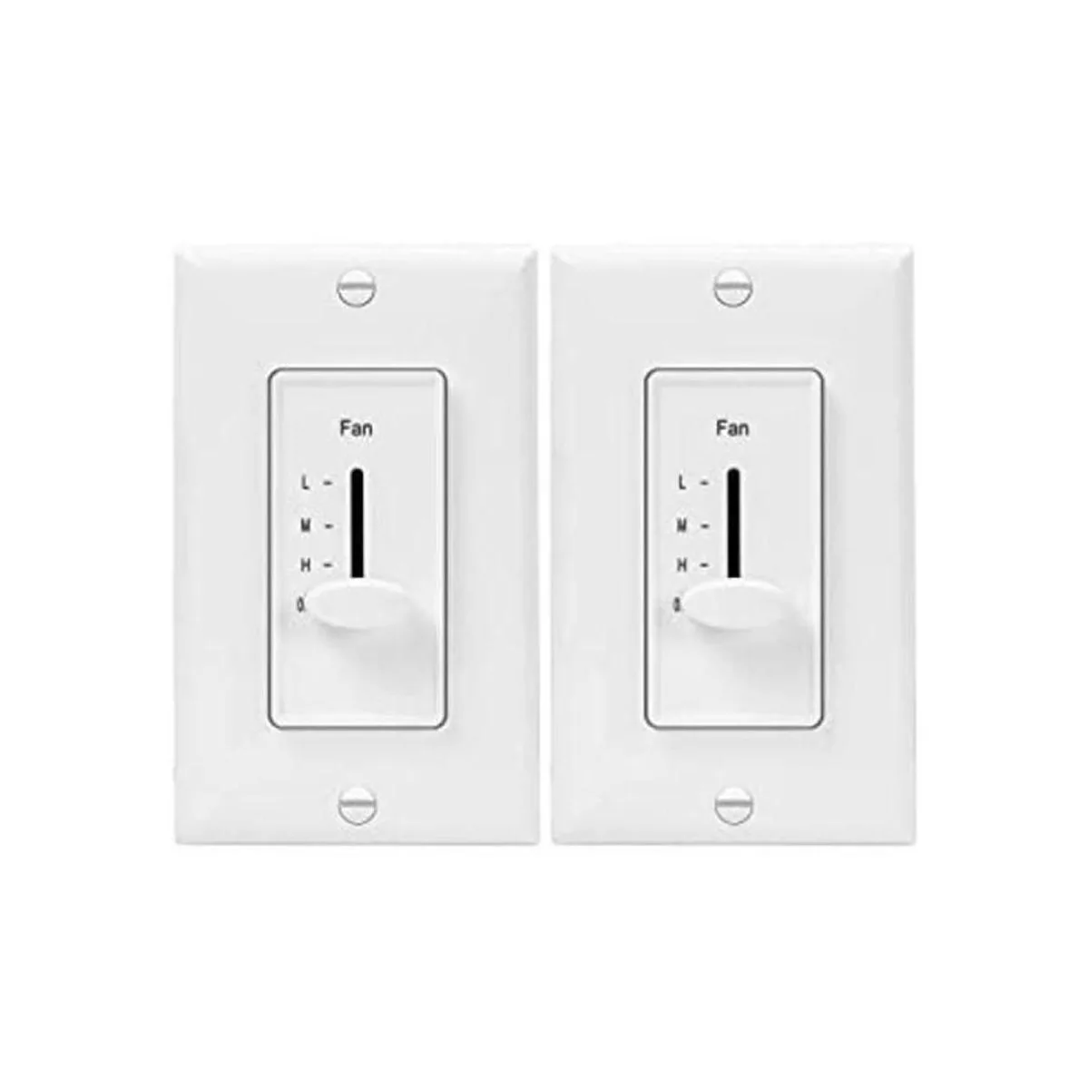 ENERLITES Decora de 3 velocidades en pared con control de ventilador de techo, interruptor deslizante, 120 VAC, 2.5 A, un solo polo, cable neutro no requiere 17000F3W2P, blanco, paquete de 2