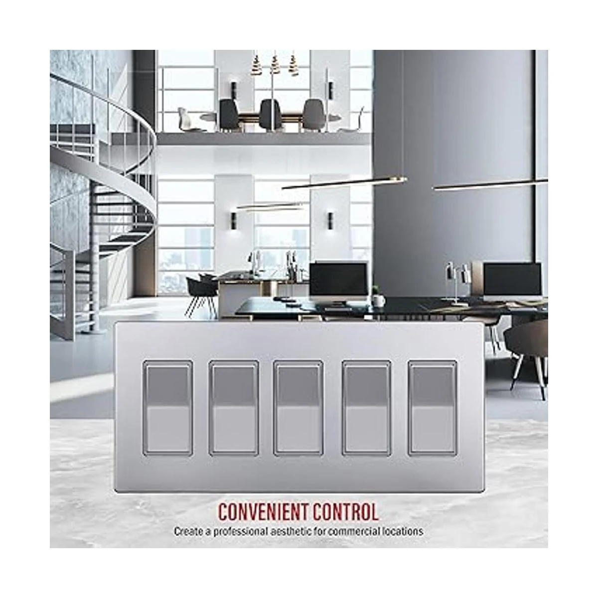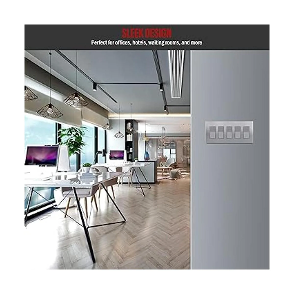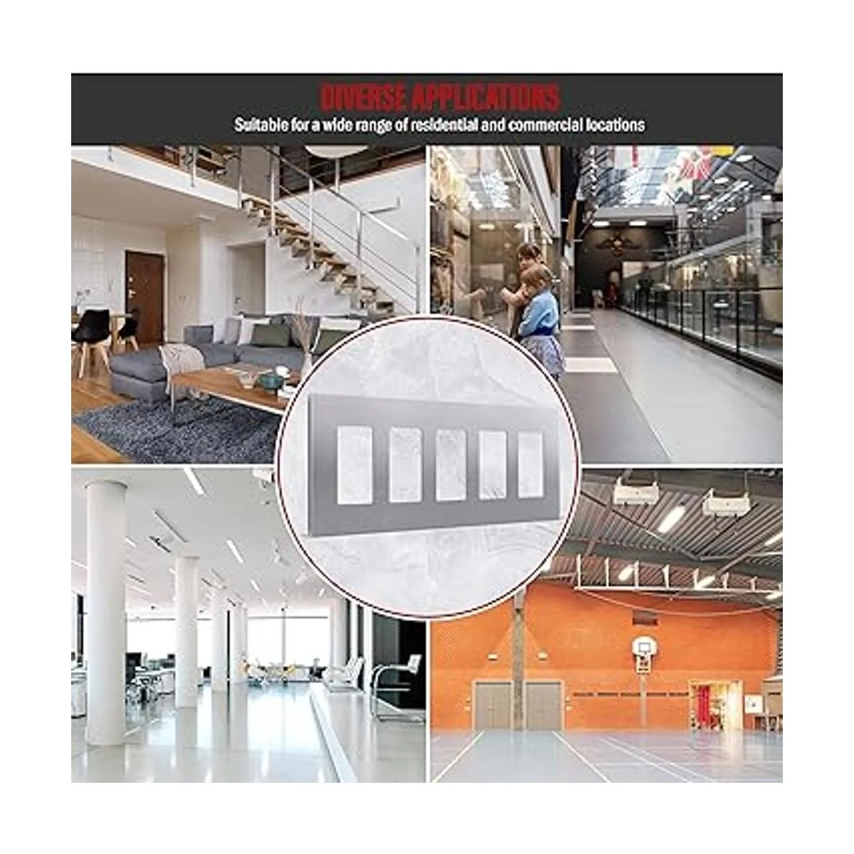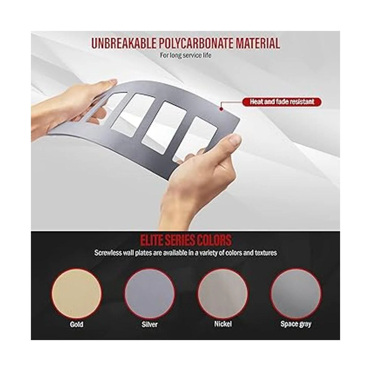 ENERLITES Elite Series Placa de pared decorativa sin tornillos para niños, acabado brillante, tamaño 5 bandas 4.68 pulgadas de alto x 10.14 pulgadas de largo, policarbonato termoplástico irrompible, SI8835SV, color plateado
