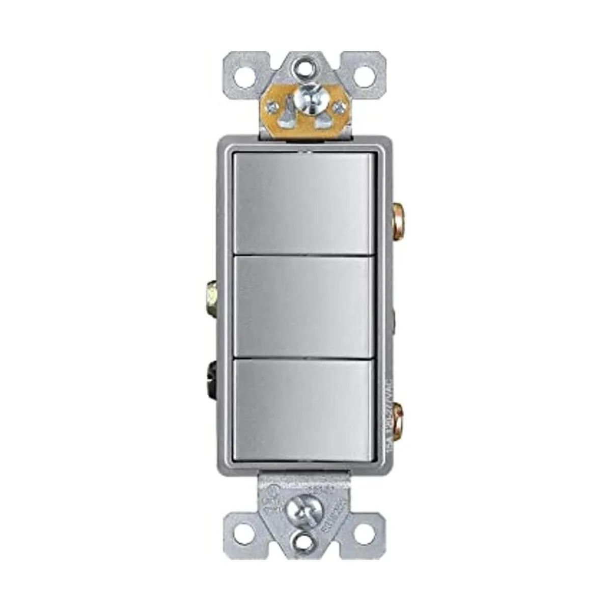 ENERLITES Interruptor de decoración de triple pala, inserto trasero tipo abrazadera, solo cables de cobre, solo polo, grado residencialcomercial, certificación UL, 62755SV, plata