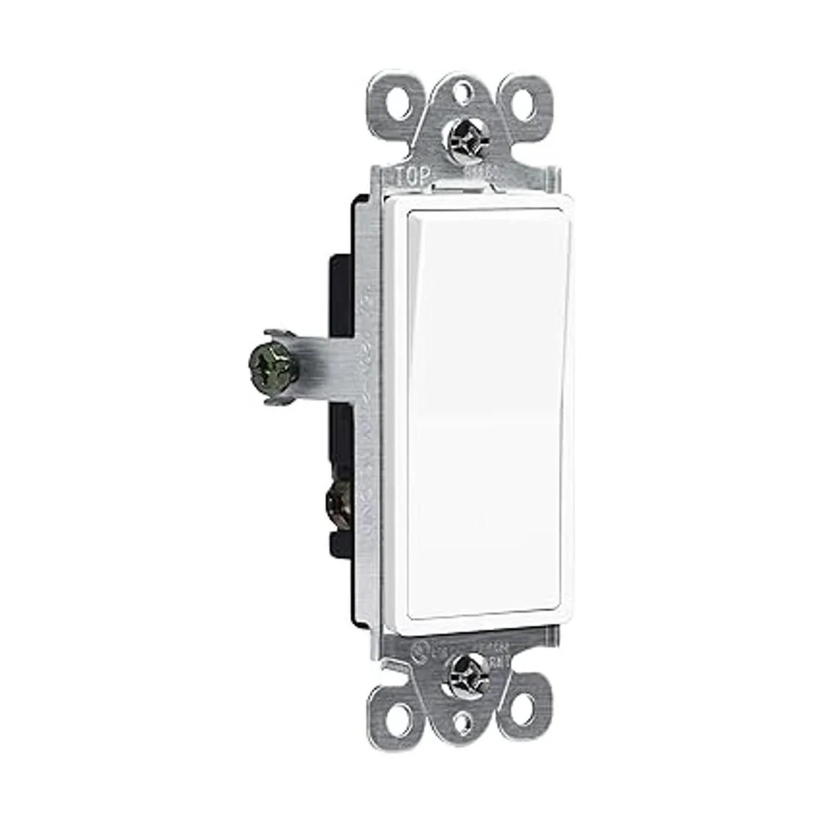 ENERLITES Interruptor de luz de paleta iluminado, un solo polo, cableado de empuje y lateral, solo alambre de cobre, tornillo de conexión a tierra, grado residencial, 15A 120277V, listado UL, 91160W, blanco