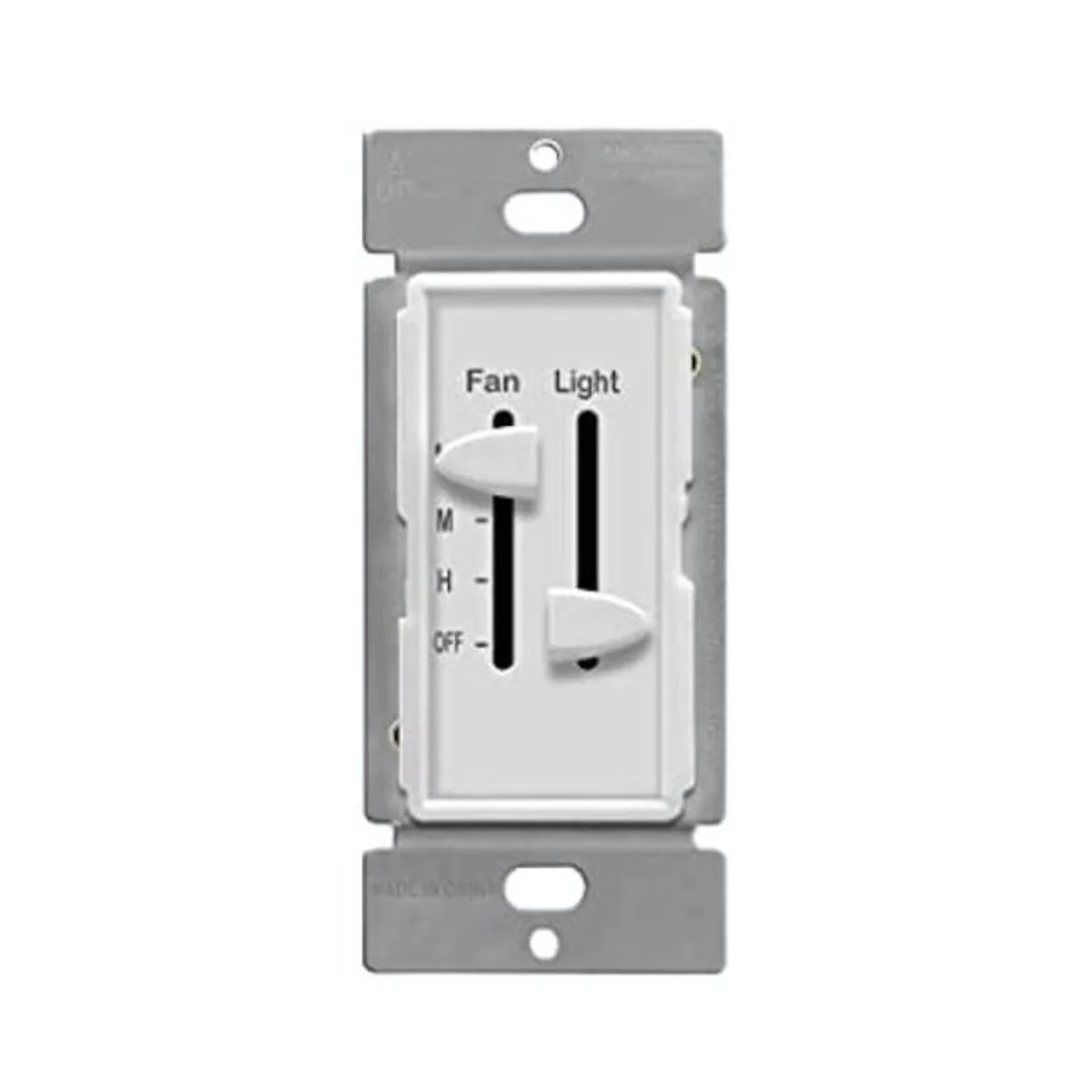 Control deslizante dual; deslizador para ventilador es de 3 velocidades no para ventiladores de tipo variable o control remoto, deslizador para luces proporciona una suave atenuación con un clic notable apagado cuando se mueve deslizador más allá de la posición más tenue.