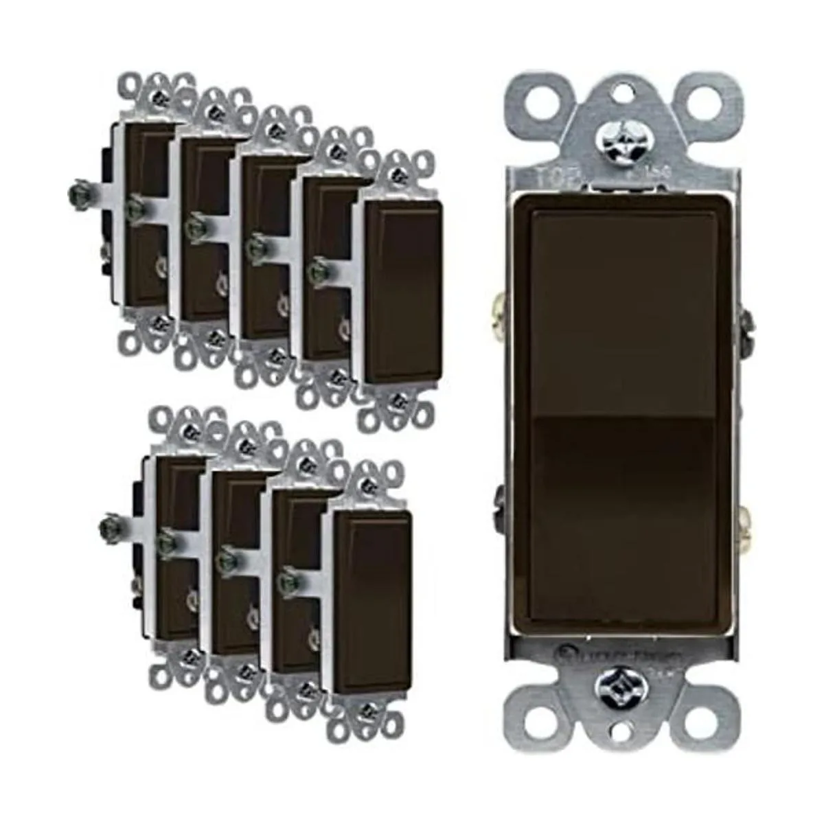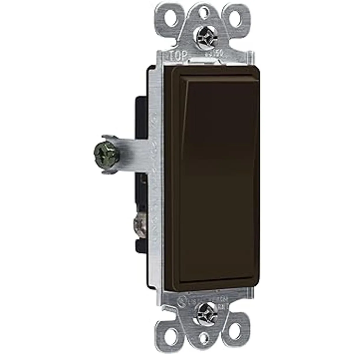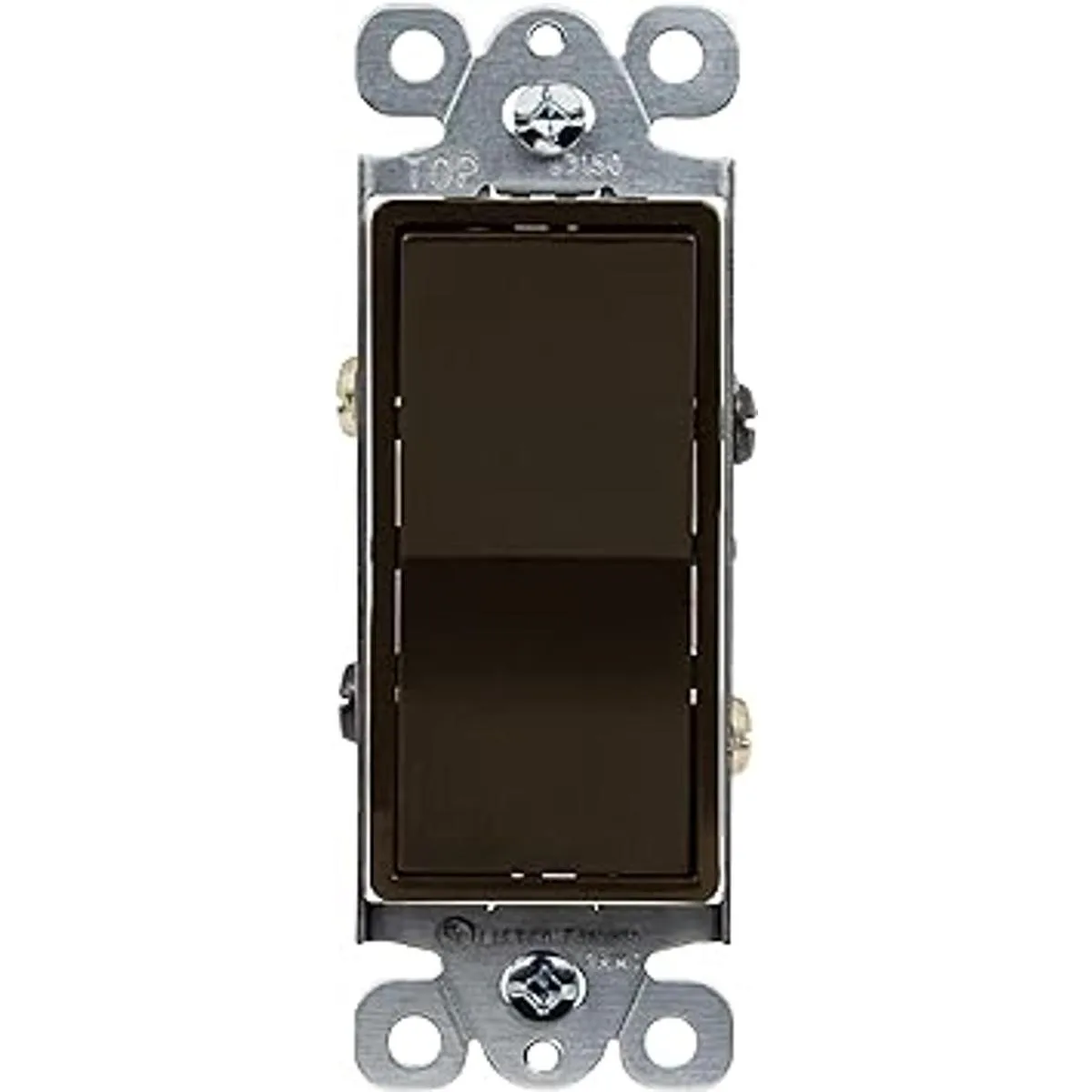 Enerlites Interruptor de pared estilo antiguo de 3 vías 3 terminales, grado residencial, 15 A 120 V277 V, tornillo de puesta a tierra, inserción trasera y terminales laterales, opciones de colores blancogrisnegromarfilalmendra clarooroplateado
