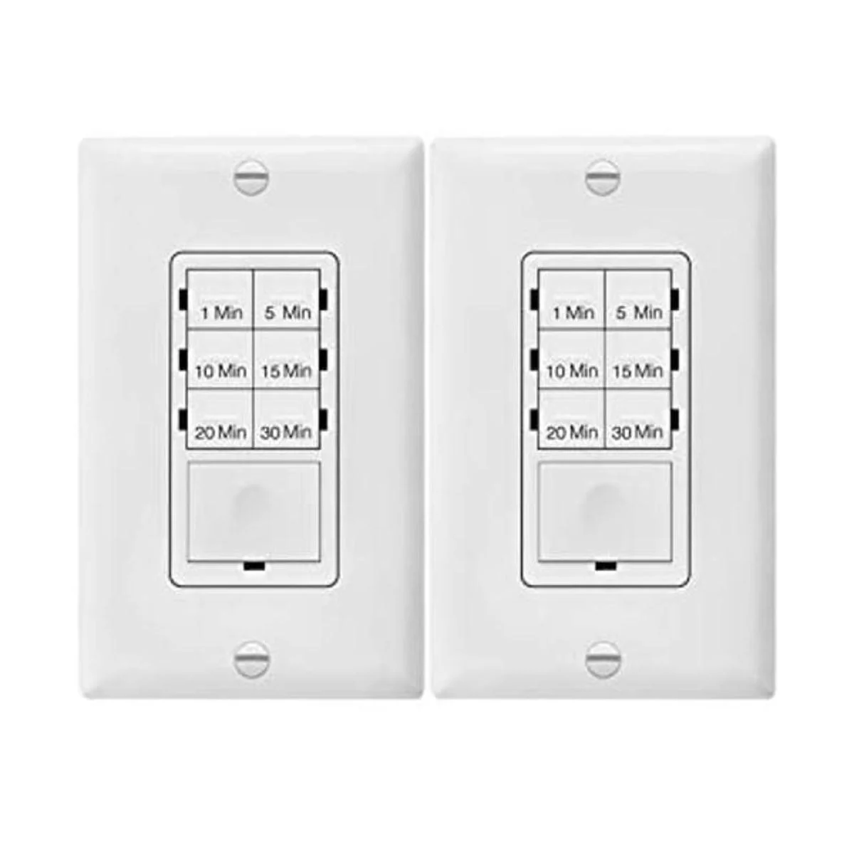 ENERLITES Interruptor de temporizador de cuenta atrás para ventiladores de baño y luces del hogar, 1510152030 ajustes mínimos con anulación manual, siempre encendido azul LED, cable neutro, listado UL, HET06A, blanco, paquete de 2