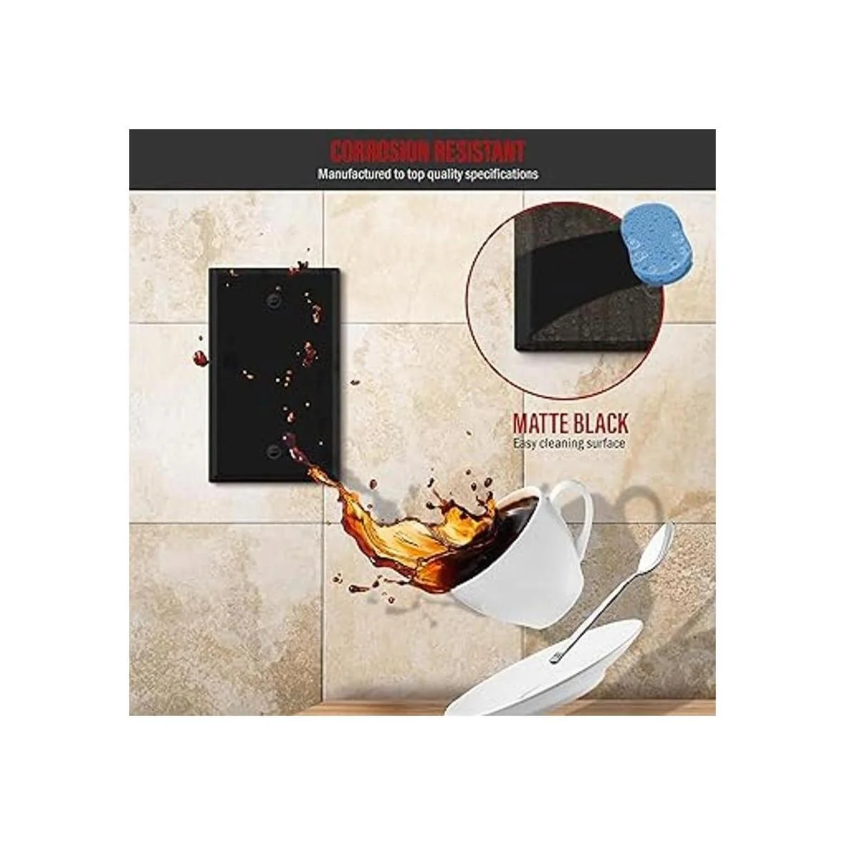 Cuenta con un acabado de color negro mate; acabado de alta calidad con bordes suaves que permiten una fácil limpieza y un brillo duradero