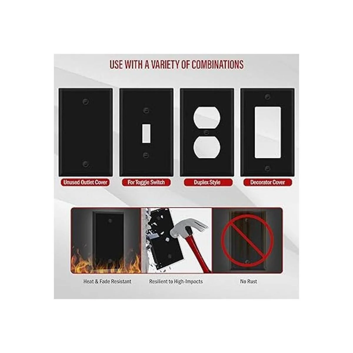 El acero estampado con recubrimiento en polvo proporciona una alta resistencia al impacto contra la fuerza pesada. ; mejora la seguridad limitando el acceso al cableado debido a la rotura de la placa de pared asociada con cubiertas de nailon y plástico
