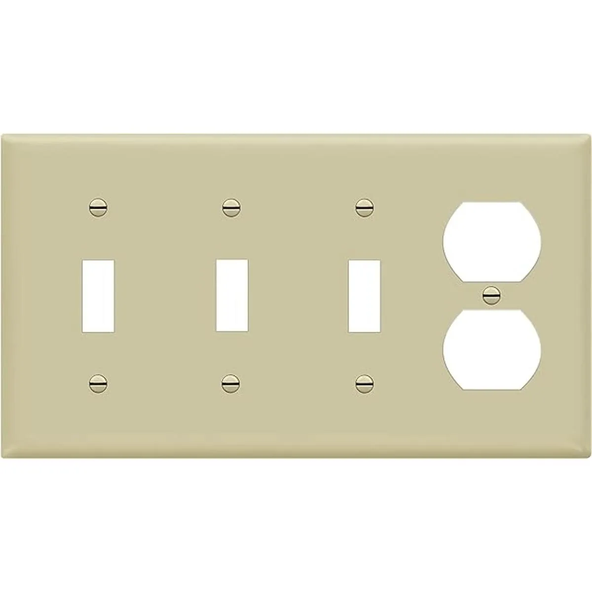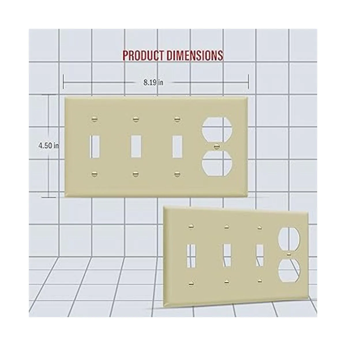 ENERLITES Placa de pared de salida de receptáculo dúplex triple combinada, cubierta de interruptor de luz de 4 bandas de tamaño estándar 4.50 x 8.19 pulgadas, policarbonato termoplástico, certificación UL, 881321I, marfil