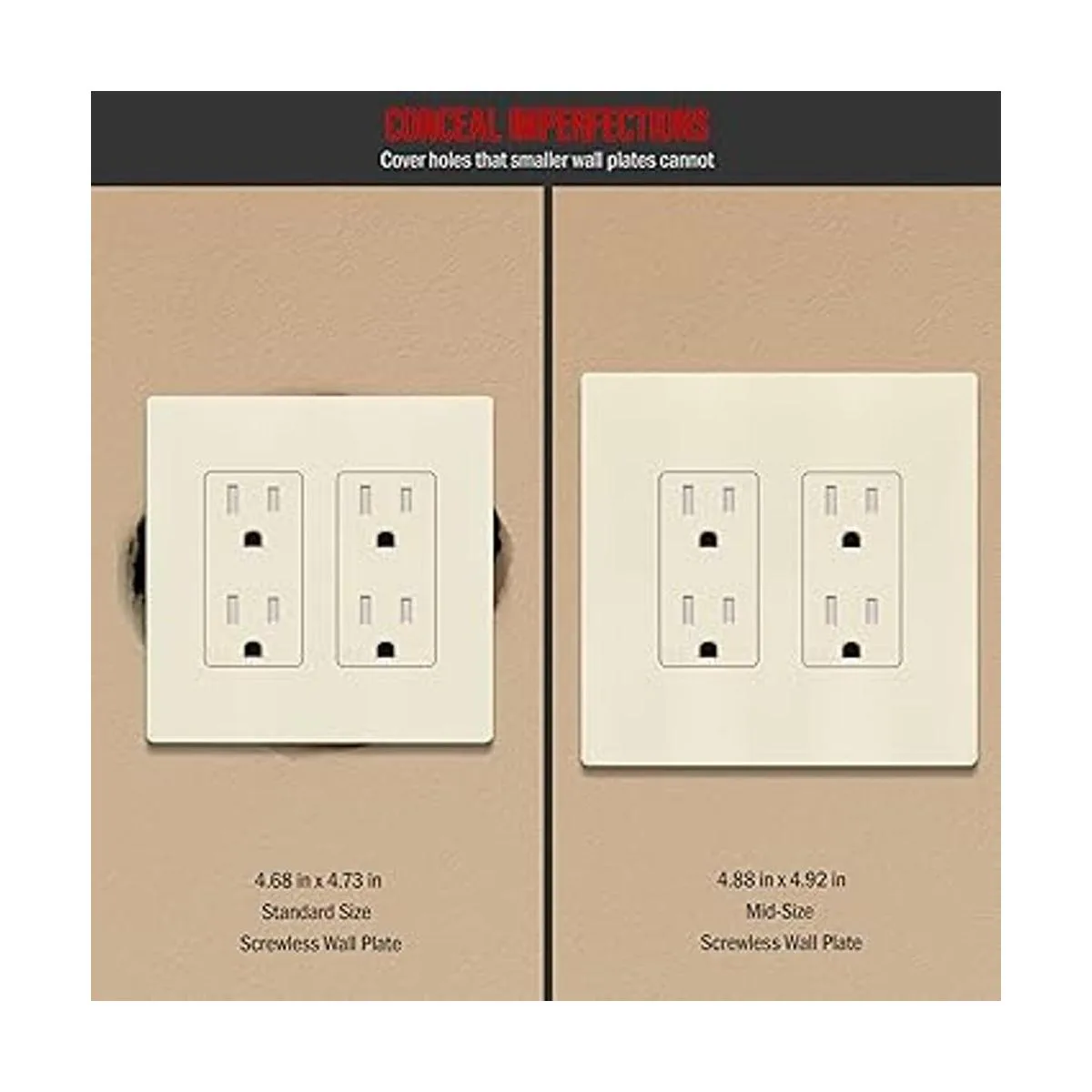ENERLITES SI8832MLA10 unidades de placas de pared decorativas sin tornillos, acabado brillante, tamaño mediano de 2 bandas, policarbonato termoplástico irrompible, color almendra clara