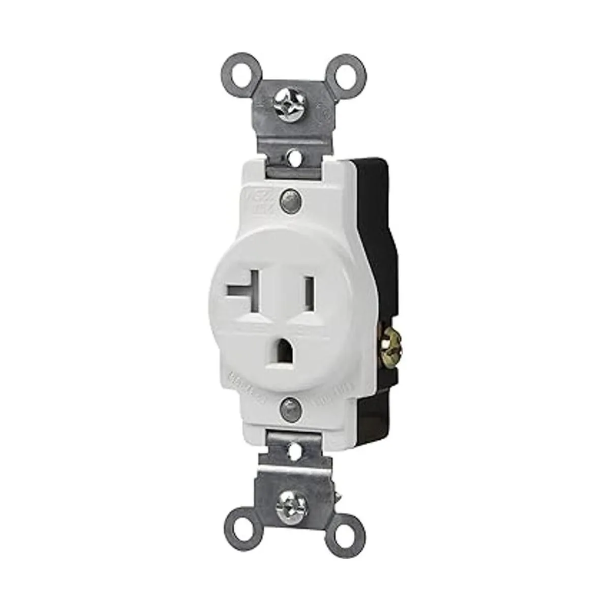 ENERLITES Toma de corriente de receptáculo individual, resistente a manipulaciones, grado comercial, 3 cables, tornillo de conexión a tierra, 2 polos, 520R, 20A 125V, certificado UL, 61200TRW, color blanco