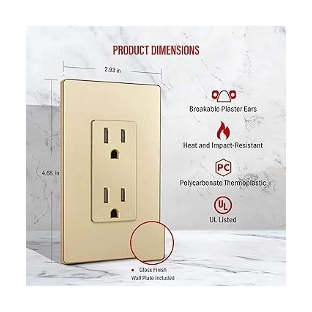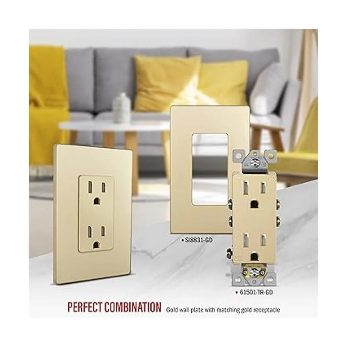 ENERLITES Toma de corriente decorativa serie Elite, segura para niños, resistente a manipulaciones, autoconexión a tierra, grado residencial, 15 A 125 V, certificación UL, tapa para pared incluida, 61501TRGDWP, dorada