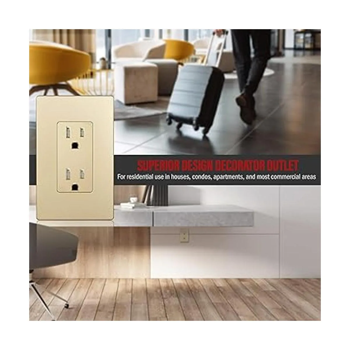 Interruptor de estilo decorativo para uso residencial en casas, condominios, apartamentos y la mayoría de áreas comerciales que requieren solo interruptores de 15 A como oficinas, escuelas, tiendas, restaurantes, instalaciones públicas y hoteles.