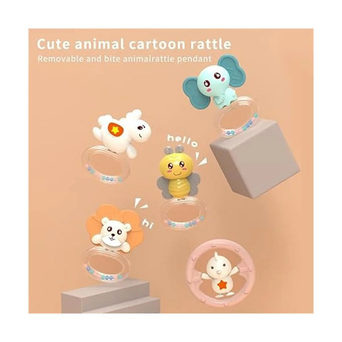 Caja de música desmontable y sonajeros: la caja de música y los sonajeros son desmontables para jugar al bebé. 5 juguetes colgantes lindos y de dibujos animados que se pueden morder el mordedor. Tienen forma de varios animales que ayudan a los bebés a mejorar la cognición y hacen que se sientan como si estuvieran en un zoológico. Los recién nacidos viajan cómodamente en esta tierra.