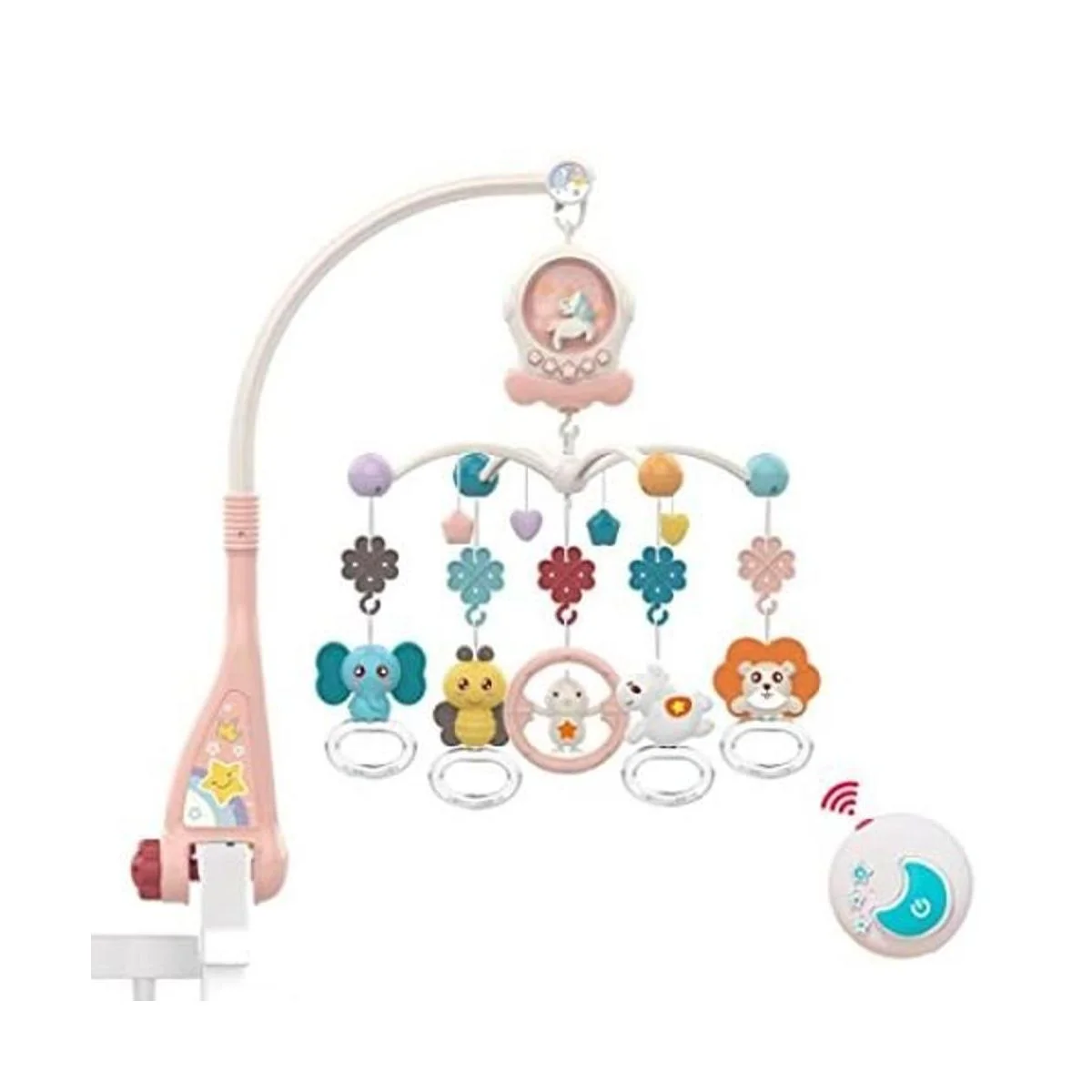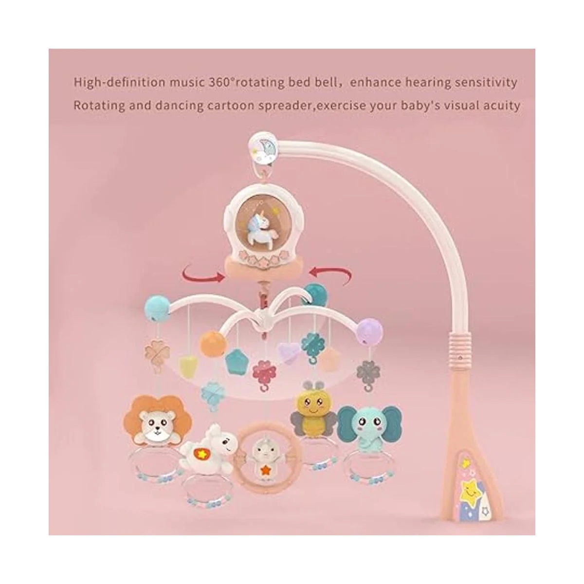 Gira Dreamily: sonajeros colgantes giratorios de 360 con hermosa música siempre es más fácil atraer la atención del bebé y ayudar a ejercitar su visión. Los sonajeros todavía pueden girar después de pulsar el botón de cambio de música durante unos segundos para apagar la música.