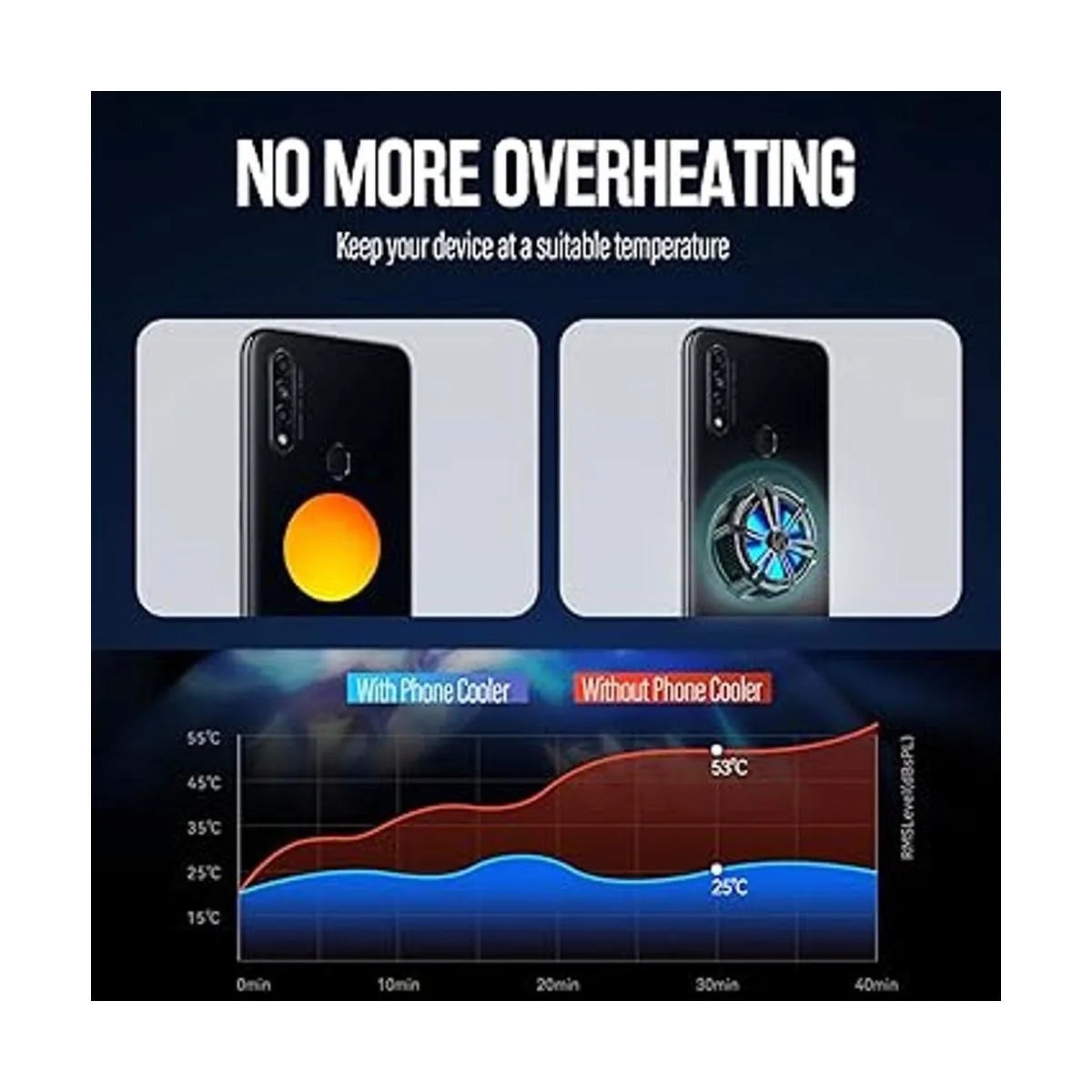 Ultraligero, ligero: el radiador de teléfono móvil adopta un diseño de reducción de ruido de 35 db. Es silencioso y no afectará a tu juego o maratones de ver películas. Diseño compacto y ligero y LED azules integrados debajo del refrigerador del teléfono celular te ofrecen un mayor estilo y una inmersión en los juegos sin importar dónde estés.