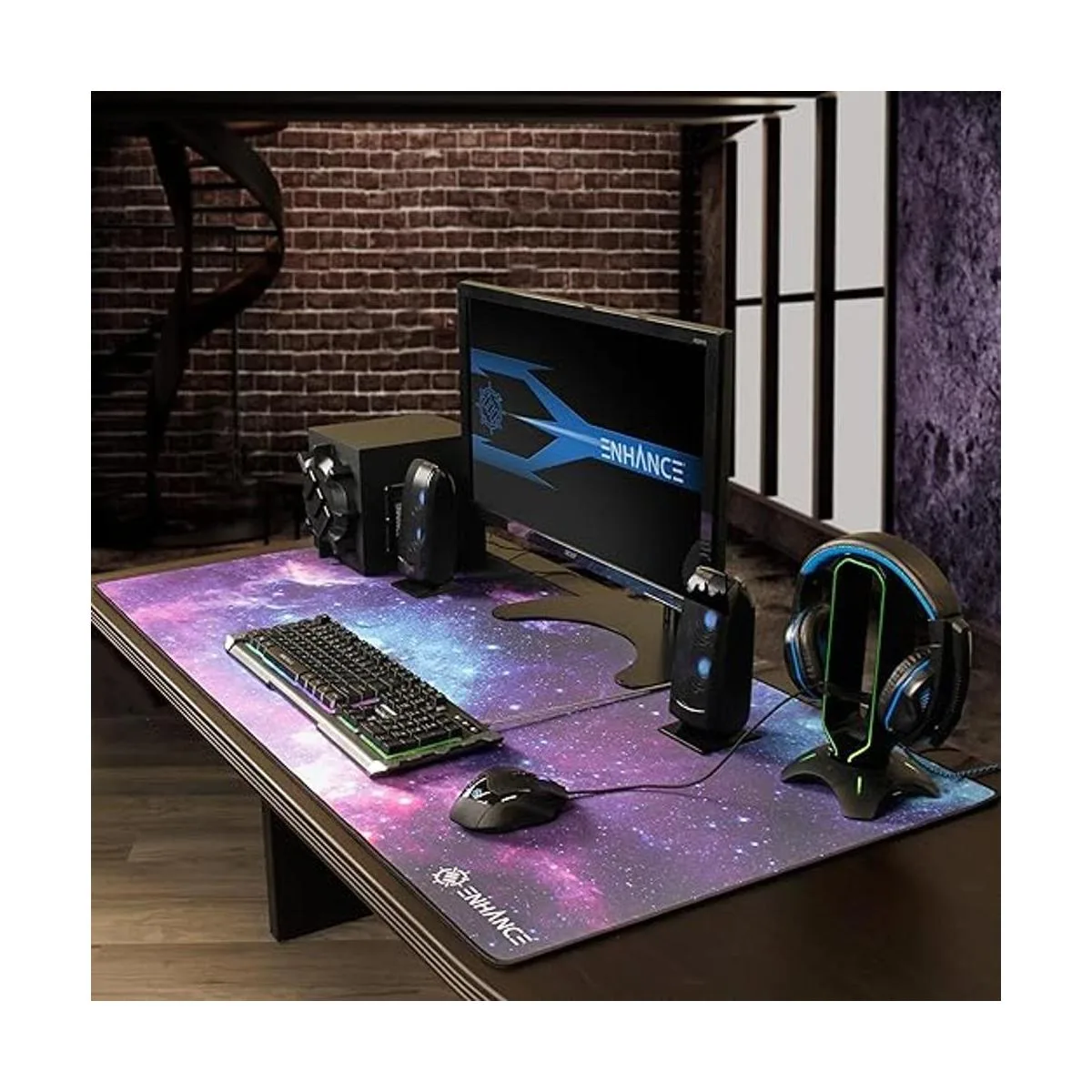 ENHANCE Tapete de escritorio para computadora de videojuegos XXXL Alfombrilla de ratón grande 3XL alfombrilla de ratón de 48 x 24 pulgadas, acolchado para escritorio de oficina, alfombrilla de ratón de mesa extendida con superficie de seguimiento suave y agarre de goma antideslizante, Galaxy