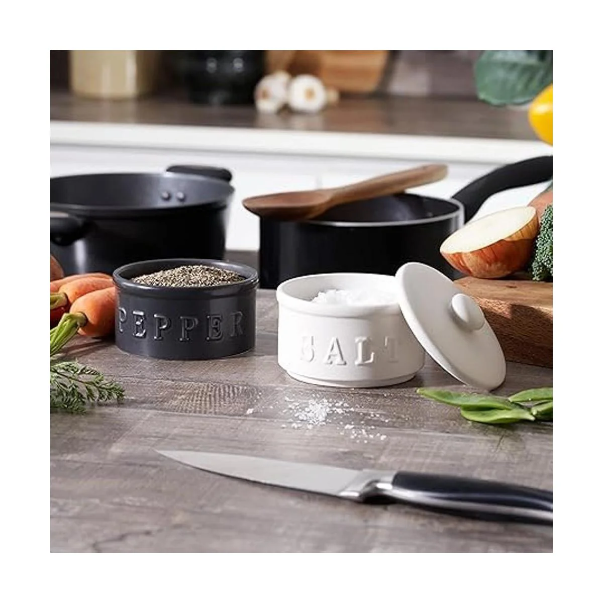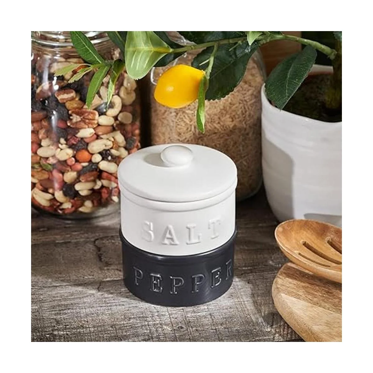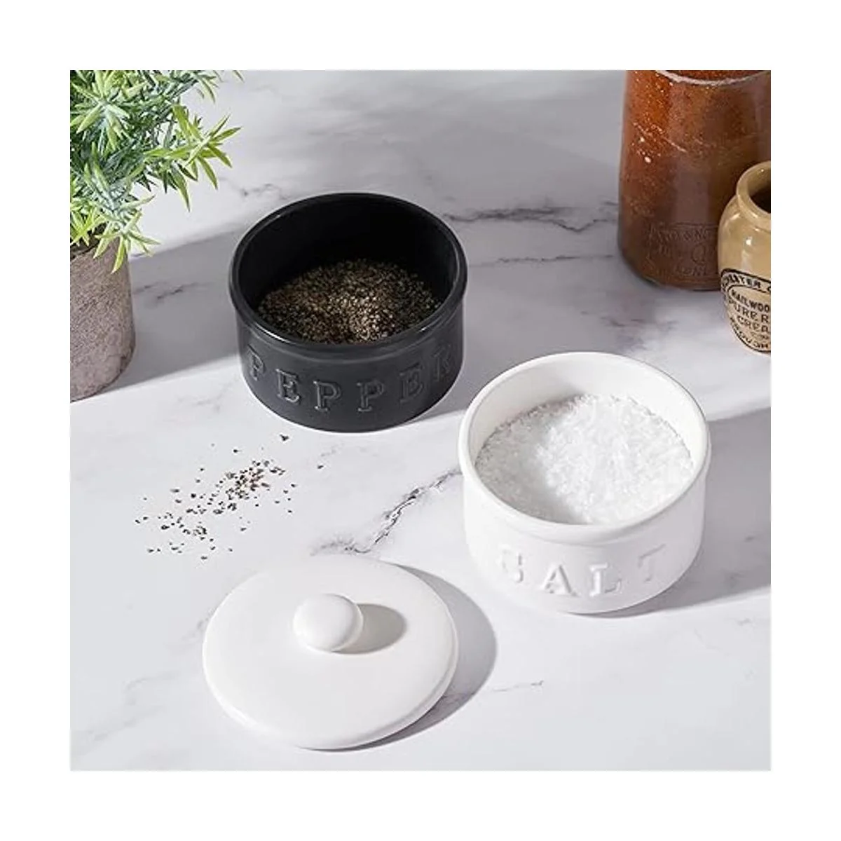 enkiware Cuencos de sal y pimienta con tapa, juego de 2 Decoración rústica apilable para tu cocina Contenedores y accesorios de mesa bohemios para el hogar Soporte de cerámica para condimentos para la encimera