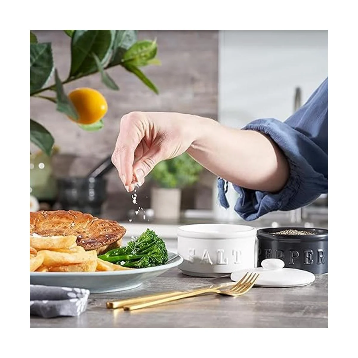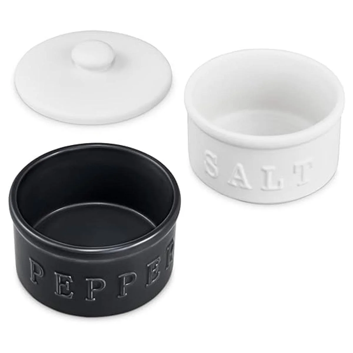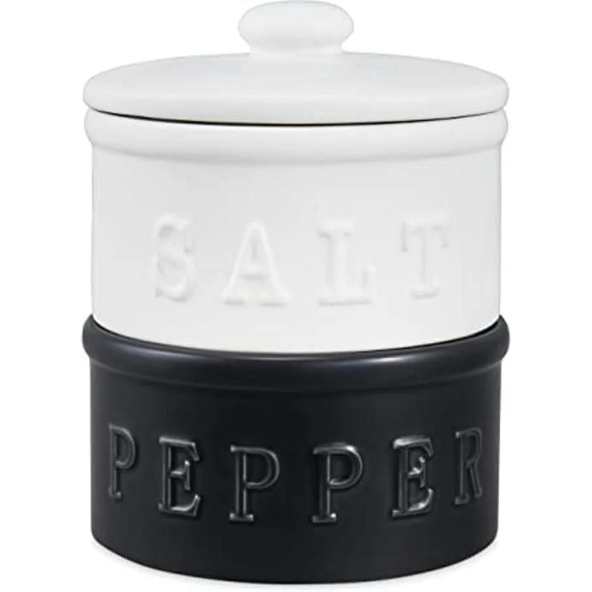 enkiware Cuencos de sal y pimienta con tapa, juego de 2 Decoración rústica apilable para tu cocina Contenedores y accesorios de mesa bohemios para el hogar Soporte de cerámica para condimentos para la encimera