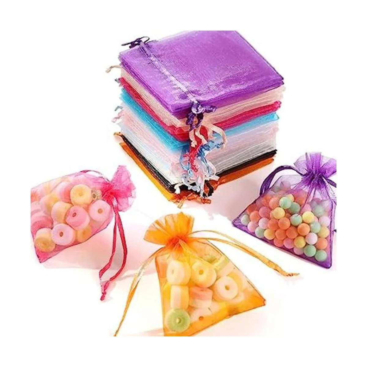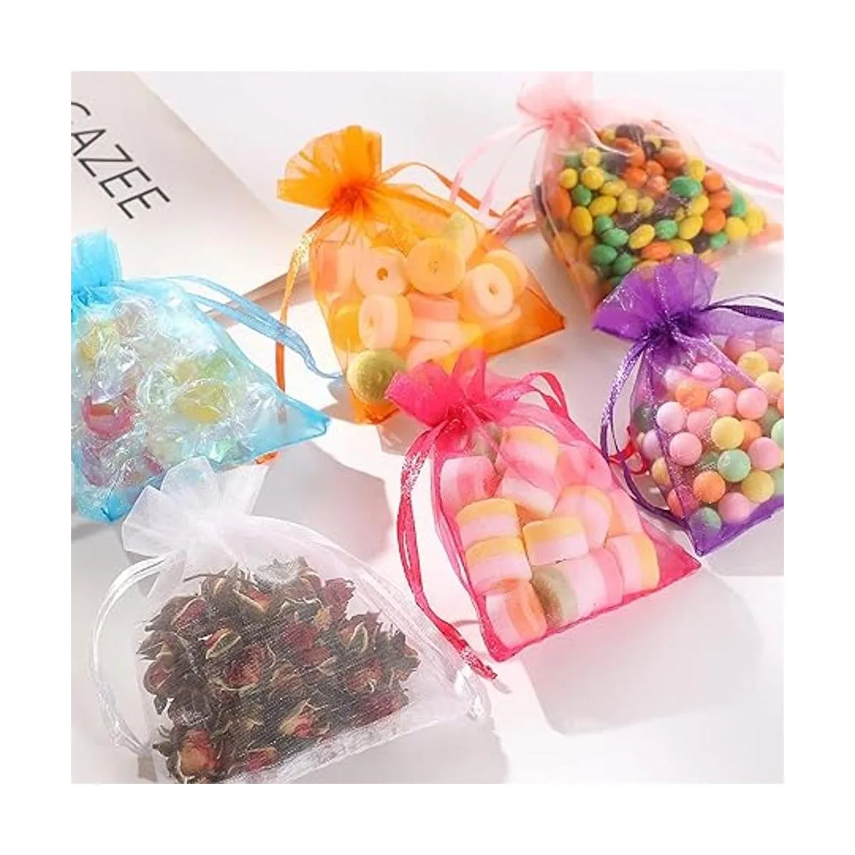 ENNIYU Bolsas de organza transparentes, bolsas de regalo de boda de 3 x 4 pulgadas con cordón, bolsas de regalo de malla de colores mixtos para joyas, bolsas de regalo de Navidad