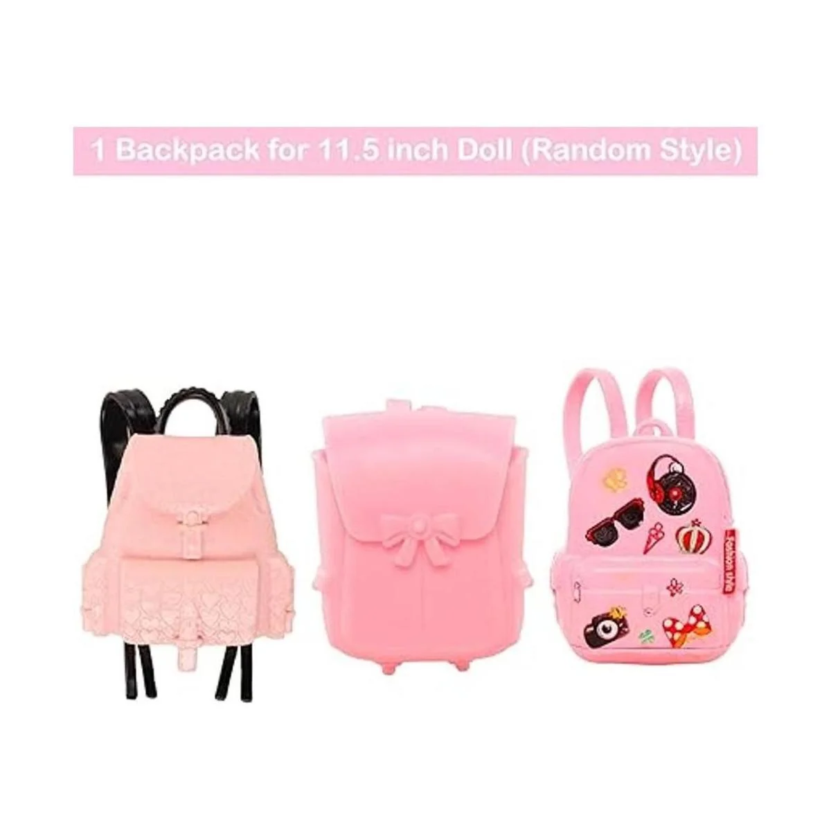 Tamaño mini de la mochila: 2.56 x 1.97 x 0.89 pulgadas la mochila es de envío aleatorio no incluye la muñeca