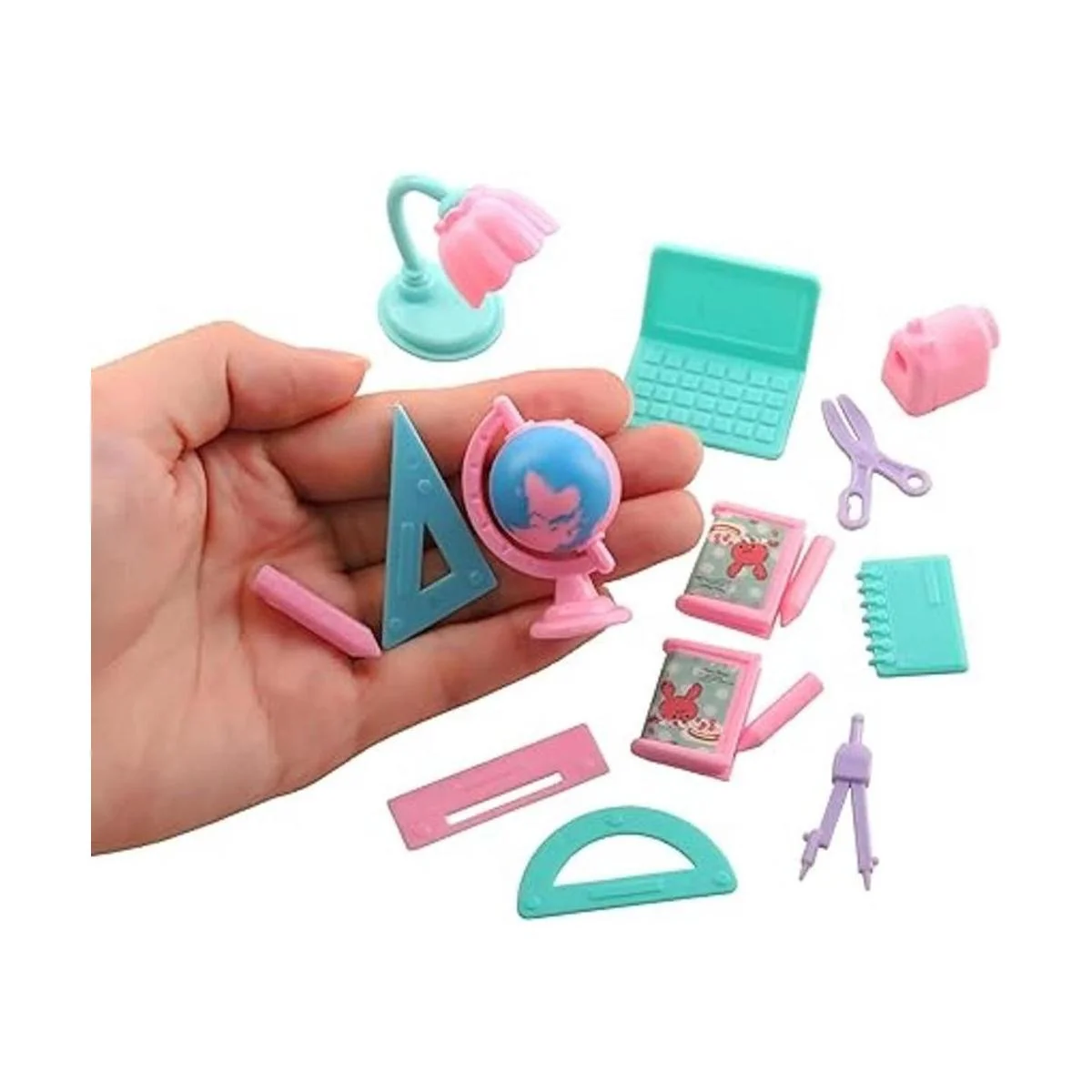 El paquete incluye: 1 mochila aleatoria, 1 auricular, 1 gafas, 2 portátiles, 3 reglas, 1 tijera, 3 bolígrafos, 1 brújula, 1 sacapuntas, 2 libros, 1 telurion, 1 lámpara de mesa no incluye la muñeca