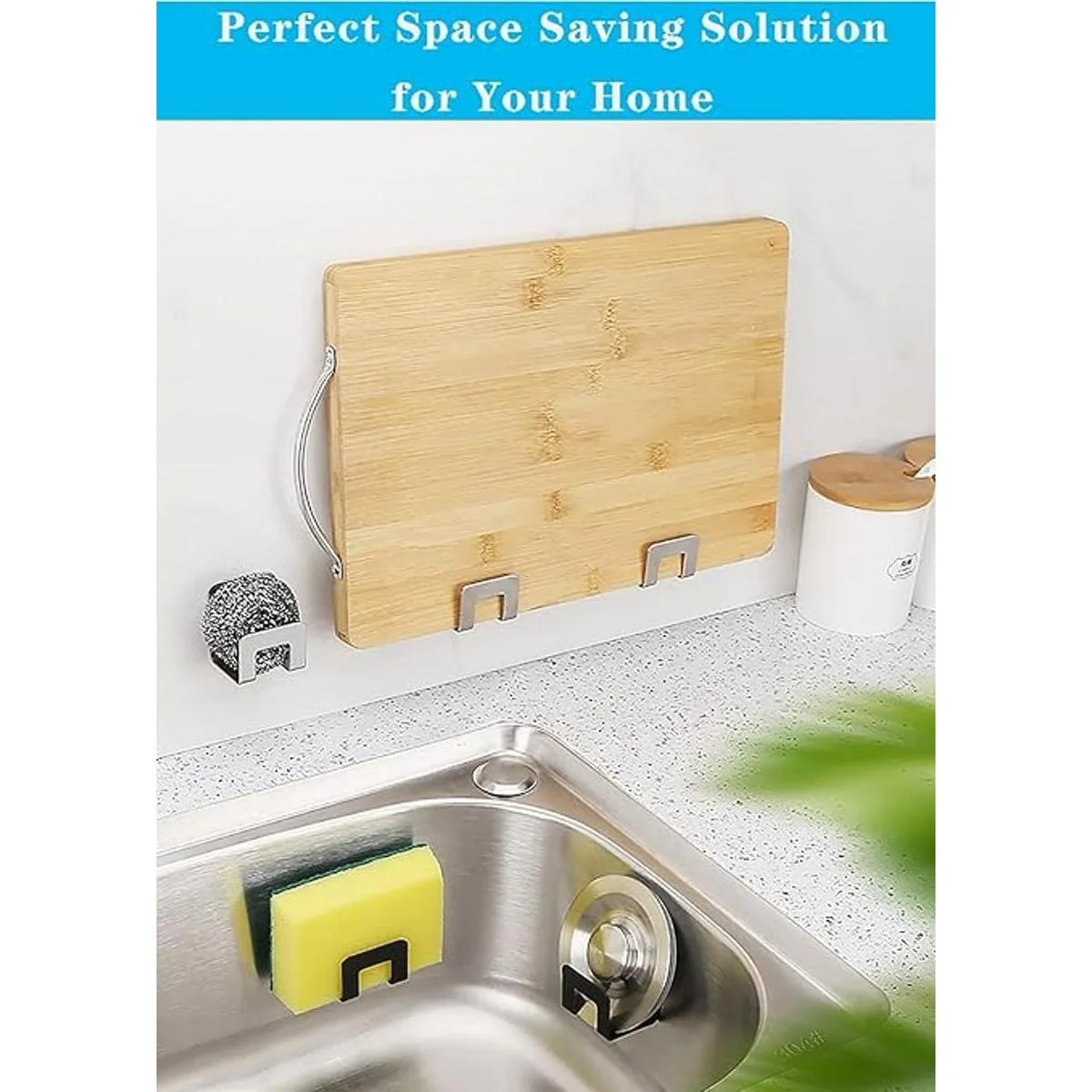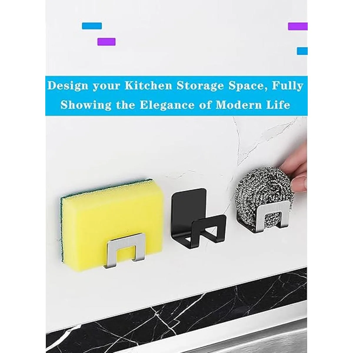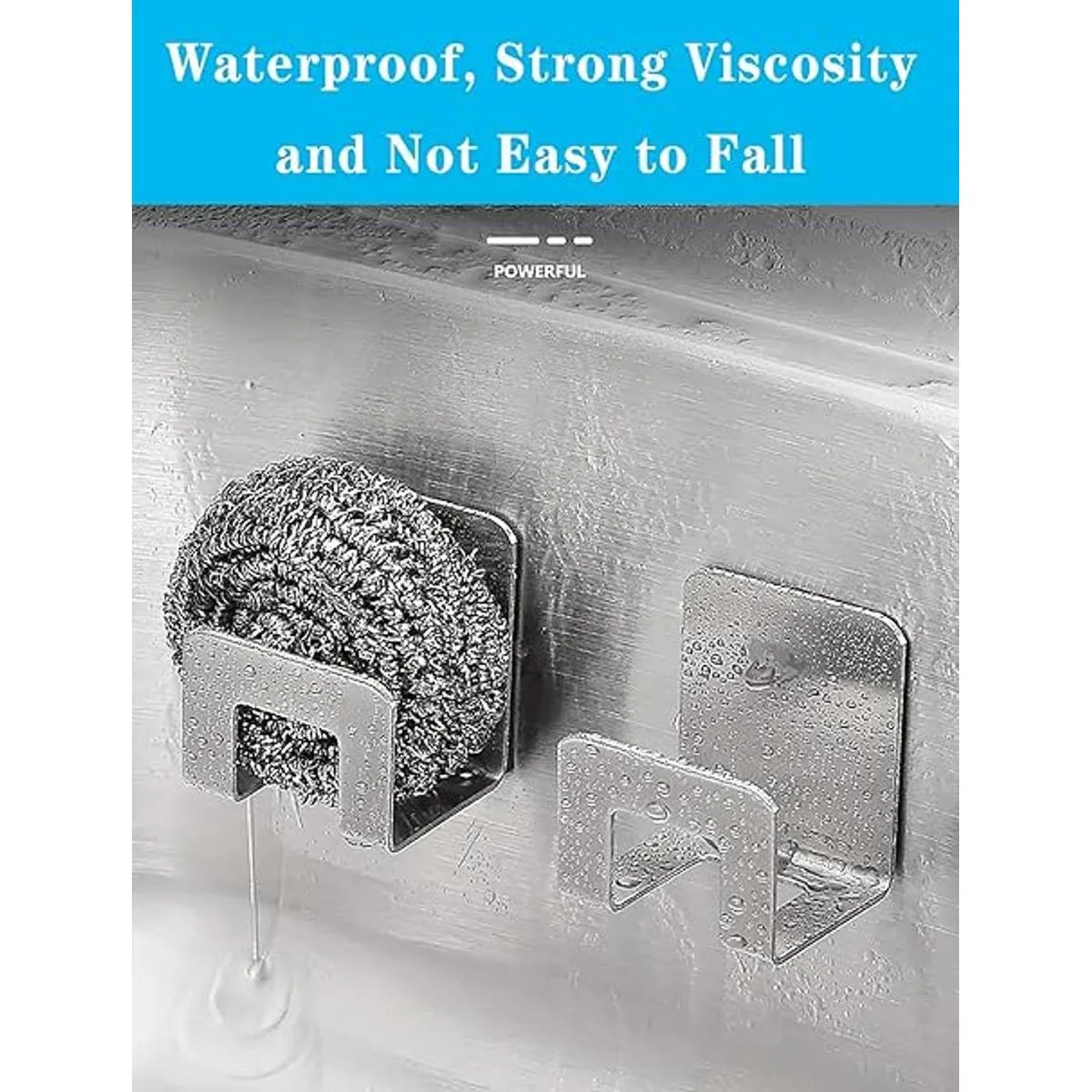 Los soportes de esponja para fregadero de cocina están hechos de acero inoxidable de alta calidad y material adhesivo, fuerte viscosidad y no se cae fácilmente, fácil de instalar y muy práctico, más fuerte que la ventosa de soporte de esponja.