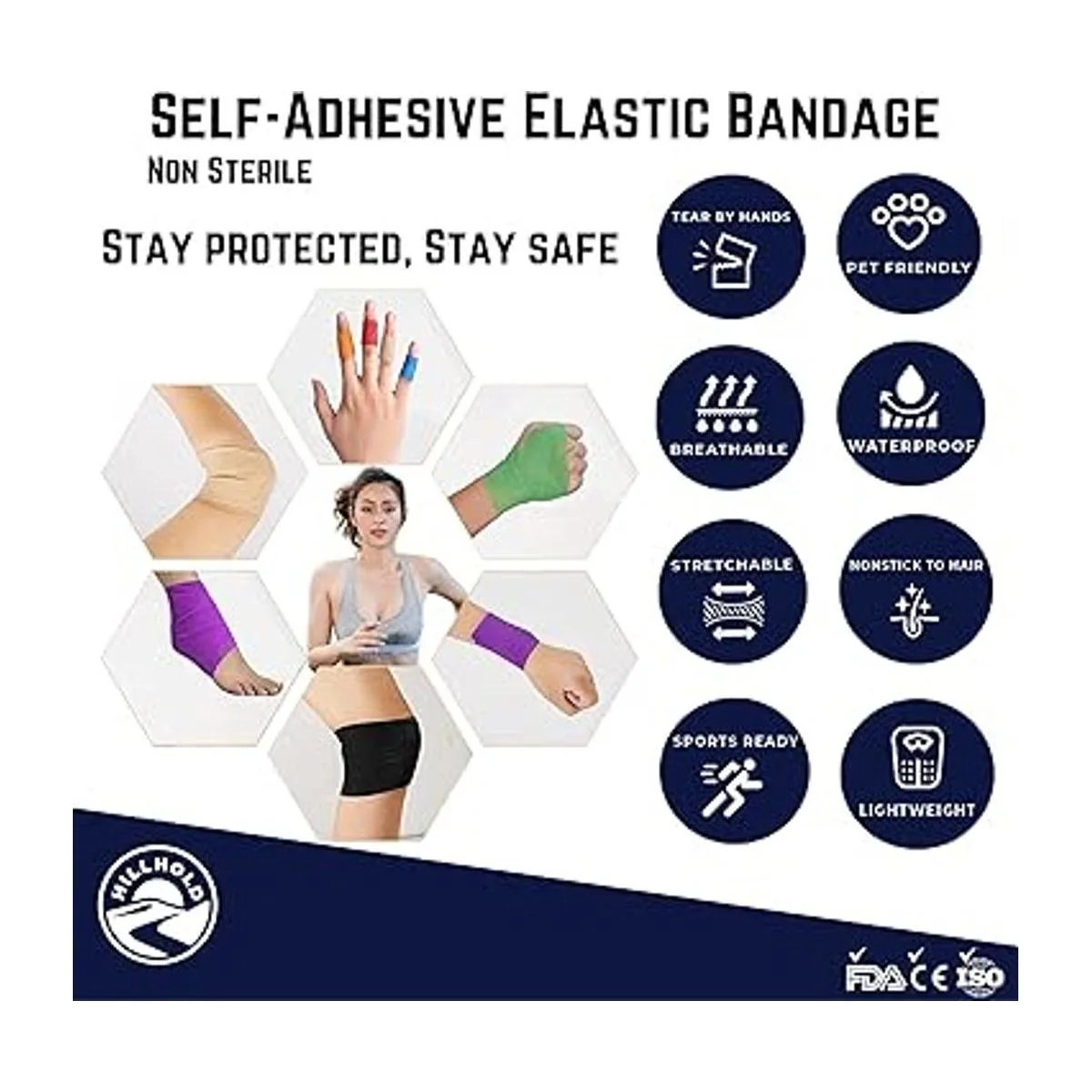 Dimensiones: la envoltura adhesiva Coband de 2 pulgadas por 5 yardas incluye vendaje de 12 colores que viene con buena ventilación. Seguro para tu piel y no daña mientras se retira sin pegarse a pelos y pelos.