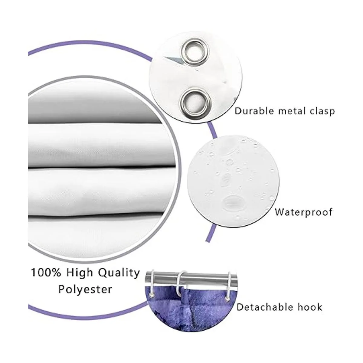 Diseño de gancho extraíble: nuestro juego de cortinas de ducha de baño incluye 12 ganchos de plástico duradero tipo C, listos para instalar y quitar para limpiar, también conveniente para usar en el baño, dormitorio, ventana, pared, apartamento, hotel, oficina o más de tus lugares favoritos