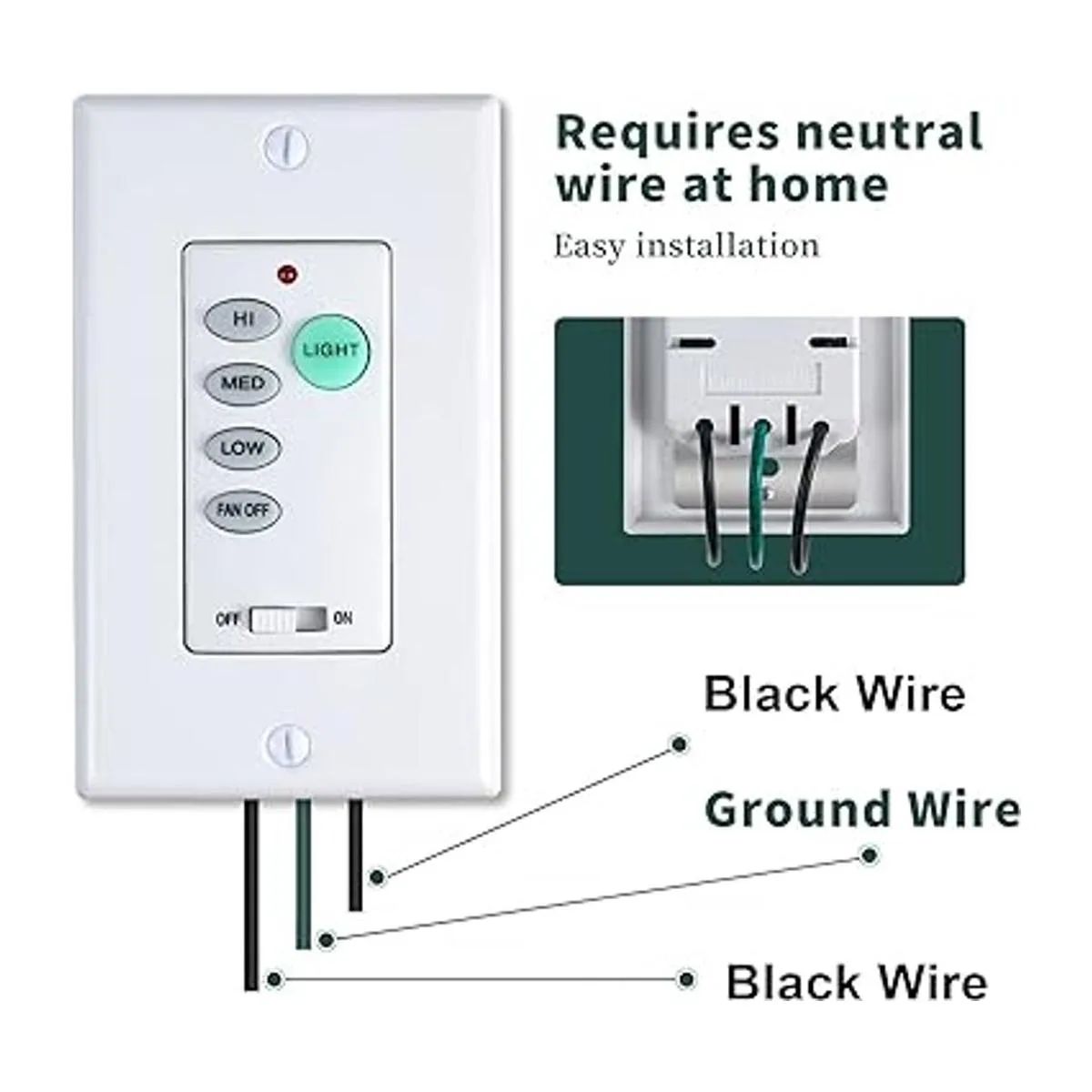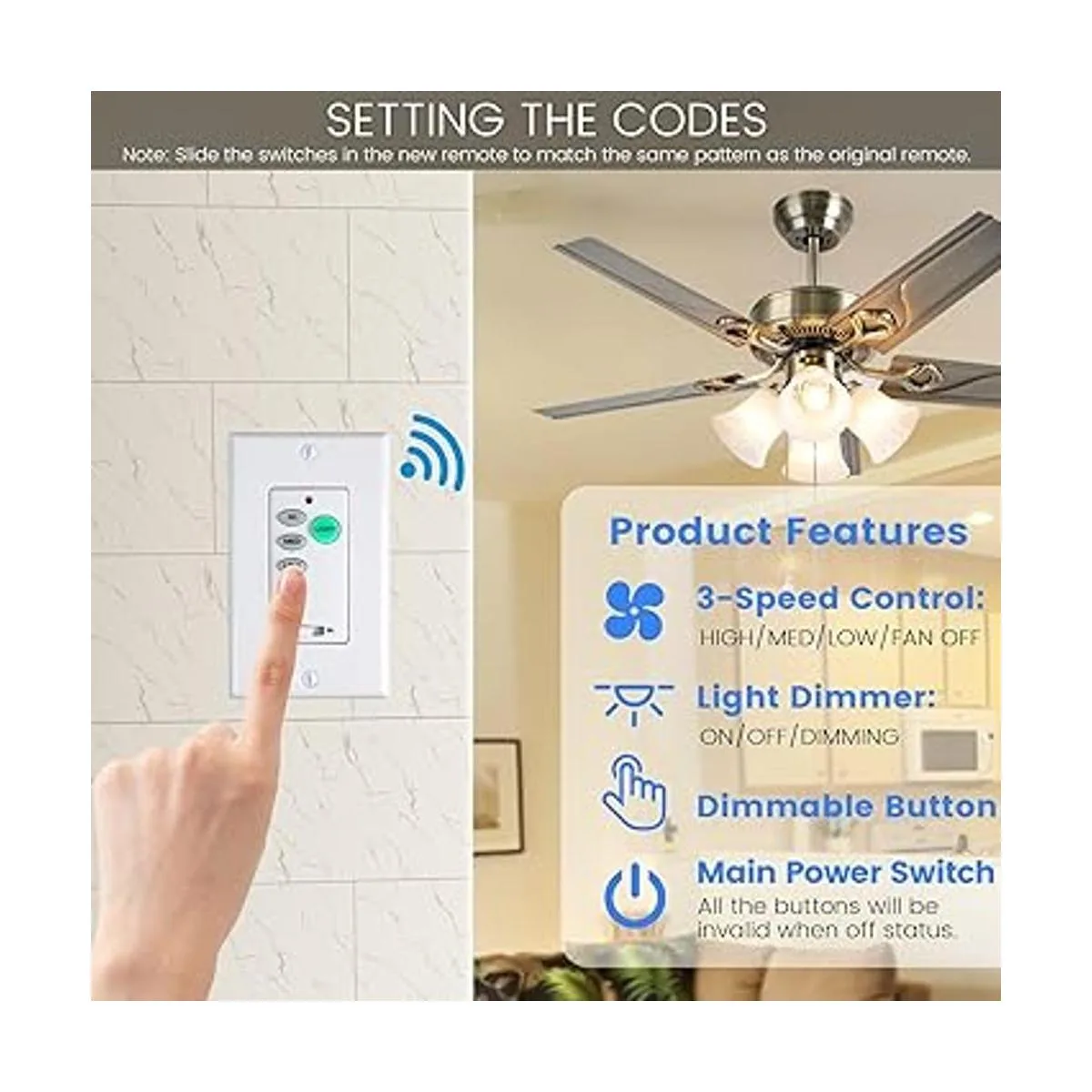 Eogifee Ventilador de techo universal con control de pared de 3 velocidades, control de ventilador montado en la pared, regulador de rango completo UC9050T CHQ9051T