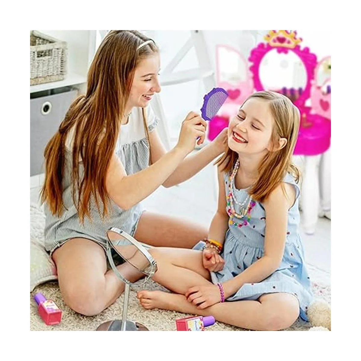 Cultivation of skills The makeup tool table of girls dress provides your child with endless imagination and good temperament, and cultivates selfconfidence and aesthetic ability. Train fine motor skills and social skills. Kids vanity set are a surprise gift for girls